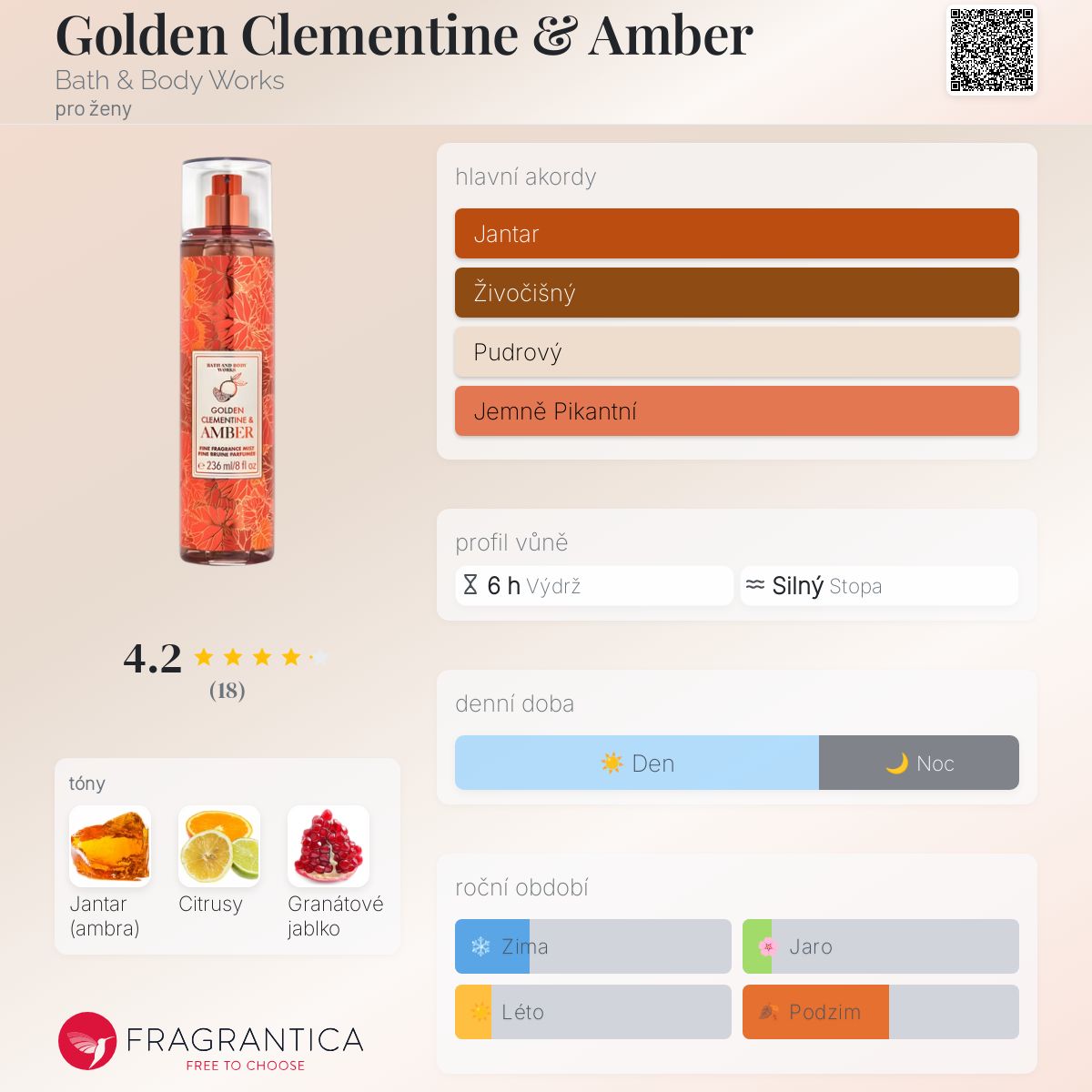 Golden Clementine & Amber podle Bath & Body Works je Citrus Aromatic vůně pro ženy. Golden Clementine & Amber byl/a uveden/a v roce 2021.