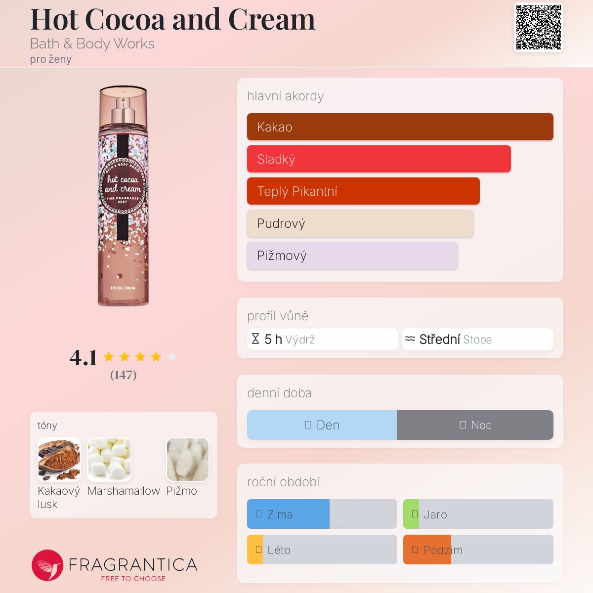 Hot Cocoa and Cream podle Bath & Body Works je Aromatic Fruity vůně pro ženy. Hot Cocoa and Cream byl/a uveden/a v roce 2018.