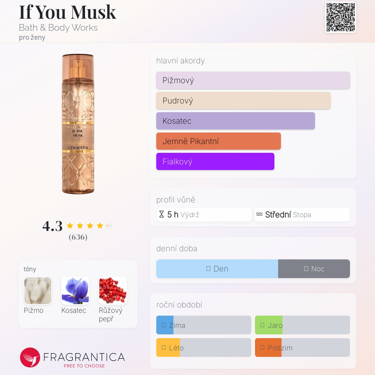 If You Musk podle Bath & Body Works je Floral vůně pro ženy. Toto je nová vůně. If You Musk byl/a uveden/a v roce 2024.