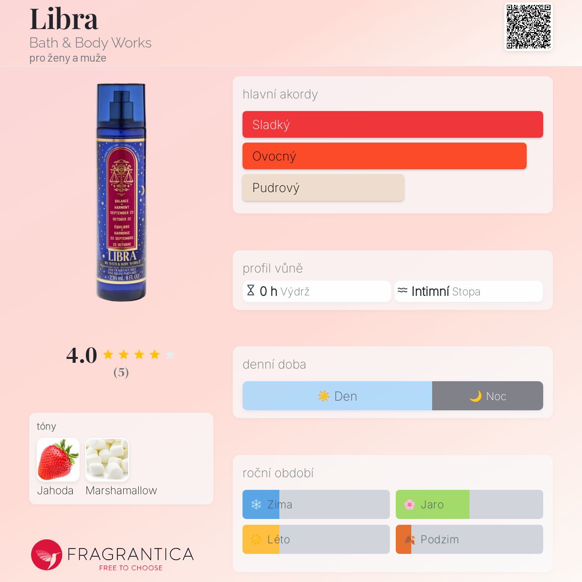 Libra podle Bath & Body Works je Aromatic Fruity vůně pro ženy a muže. Toto je nová vůně. Libra byl/a uveden/a v roce 2025.