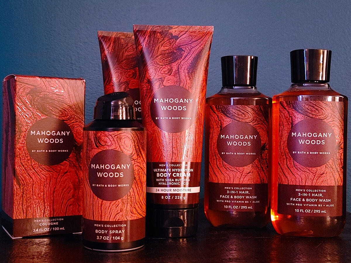 Mahogany Woods podle Bath & Body Works je Orientální Woody vůně pro muže. Mahogany Woods byl/a uveden/a v roce 2014. Vrchní tóny jsou Mahagon, Krvavý pomeranč a Červená paprička; střední tóny jsouKoňak a Šalvěj muškátová ; základní tóny jsou Bourbonská vanilka, Jantar (ambra), Fazole tonka a Santalové dřevo.