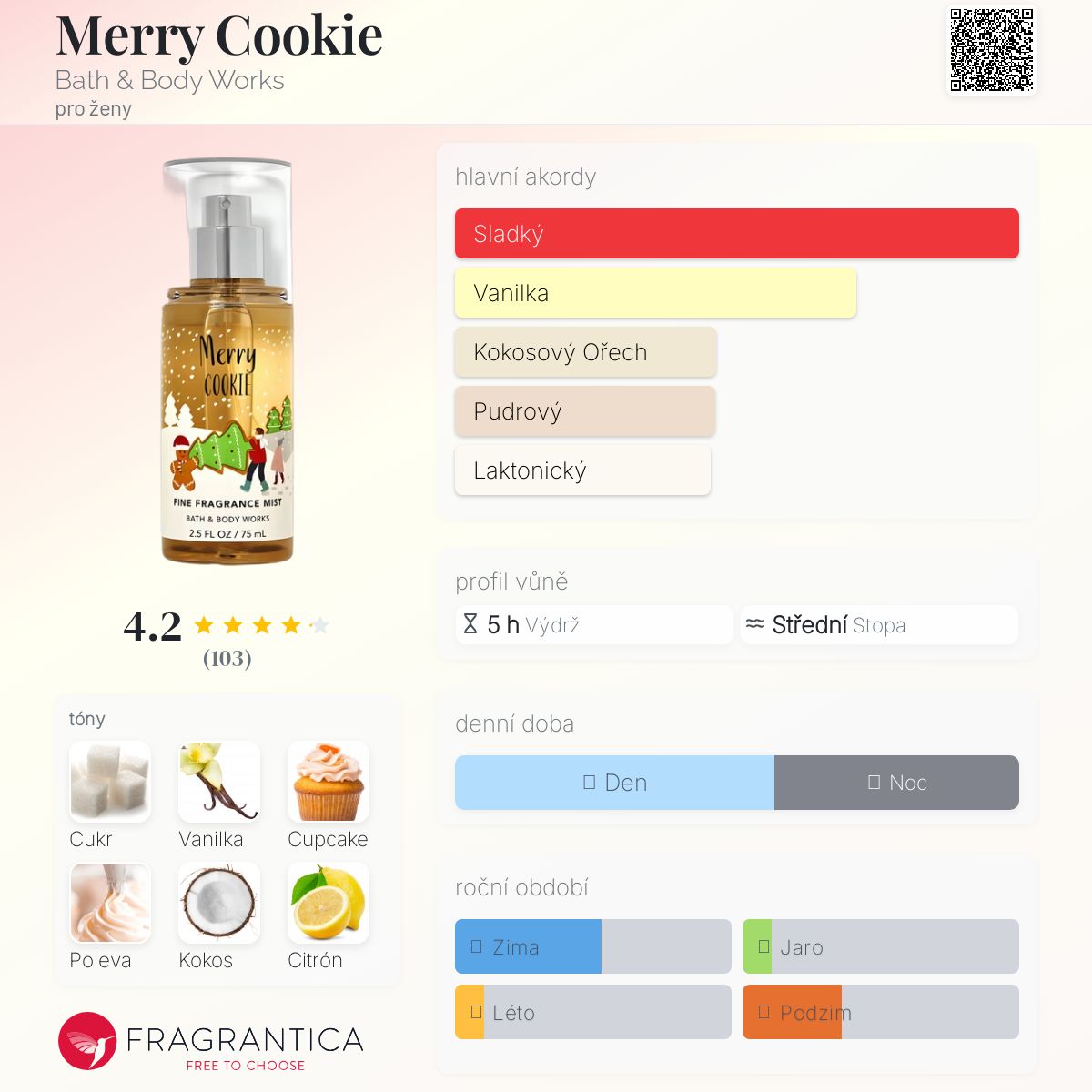 Merry Cookie podle Bath & Body Works je Orientální Vanilla vůně pro ženy. Merry Cookie byl/a uveden/a v roce 2021.