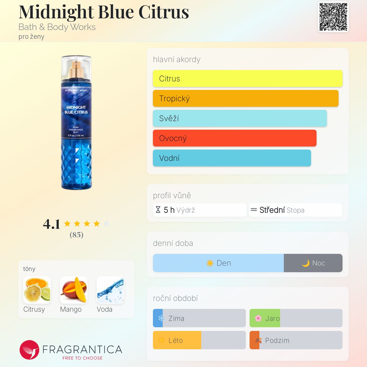 Midnight Blue Citrus podle Bath & Body Works je Citrus vůně pro ženy. Midnight Blue Citrus byl/a uveden/a v roce 2023.