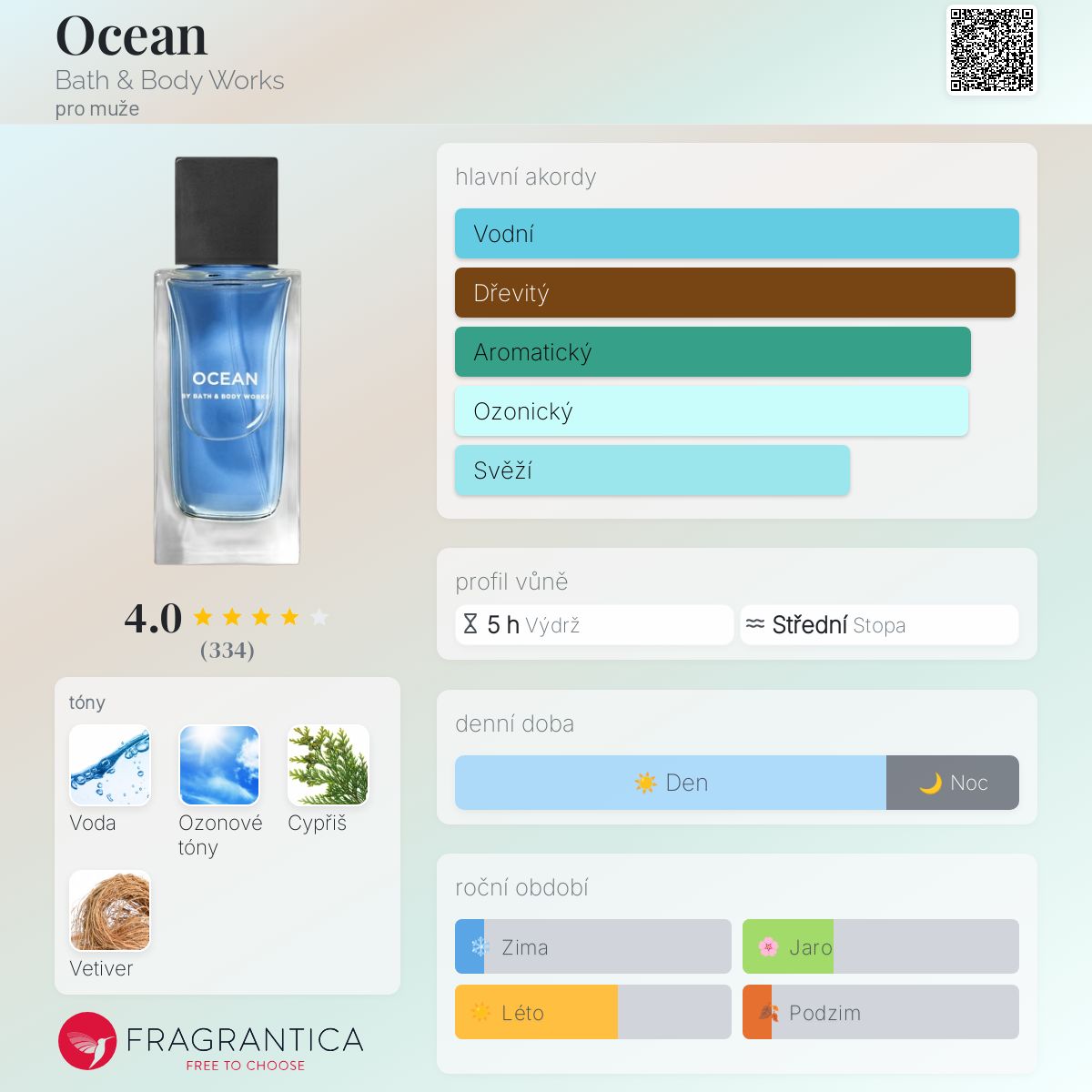 Ocean podle Bath & Body Works je Aromatic Aquatic vůně pro muže. Ocean byl/a uveden/a v roce 2017.