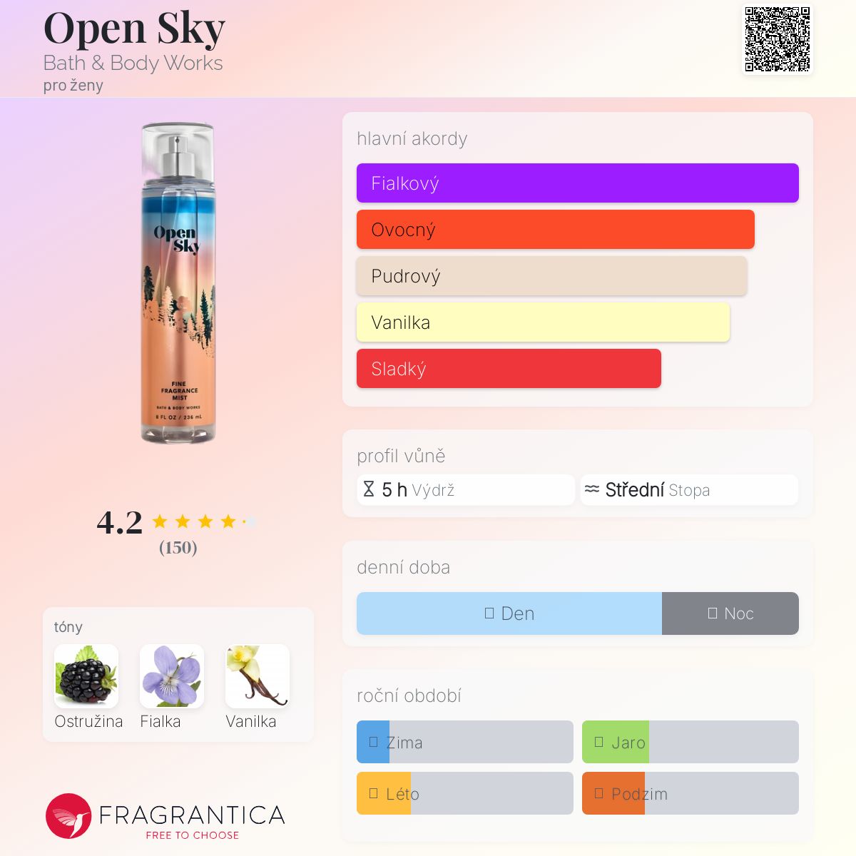 Open Sky podle Bath & Body Works je Floral Fruity vůně pro ženy. Open Sky byl/a uveden/a v roce 2021.