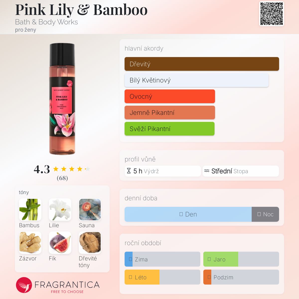 Pink Lily & Bamboo podle Bath & Body Works je Floral vůně pro ženy. Pink Lily & Bamboo byl/a uveden/a v roce 2022.