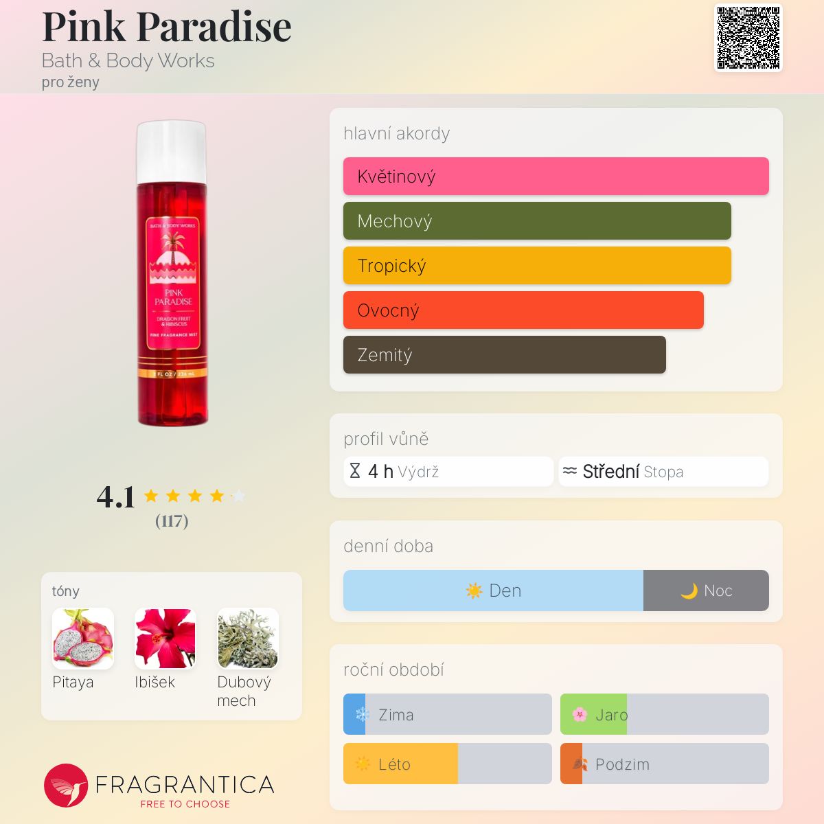 Pink Paradise podle Bath & Body Works je Floral Fruity vůně pro ženy. Pink Paradise byl/a uveden/a v roce 2024.
