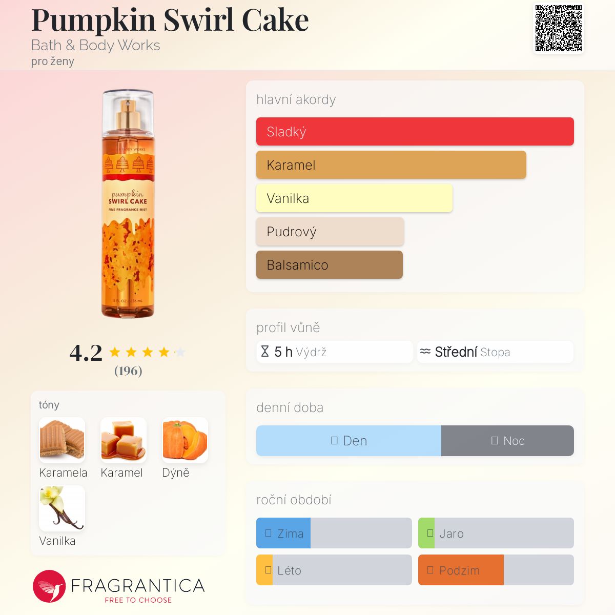 Pumpkin Swirl Cake podle Bath & Body Works je Orientální Vanilla vůně pro ženy. Toto je nová vůně. Pumpkin Swirl Cake byl/a uveden/a v roce 2024.