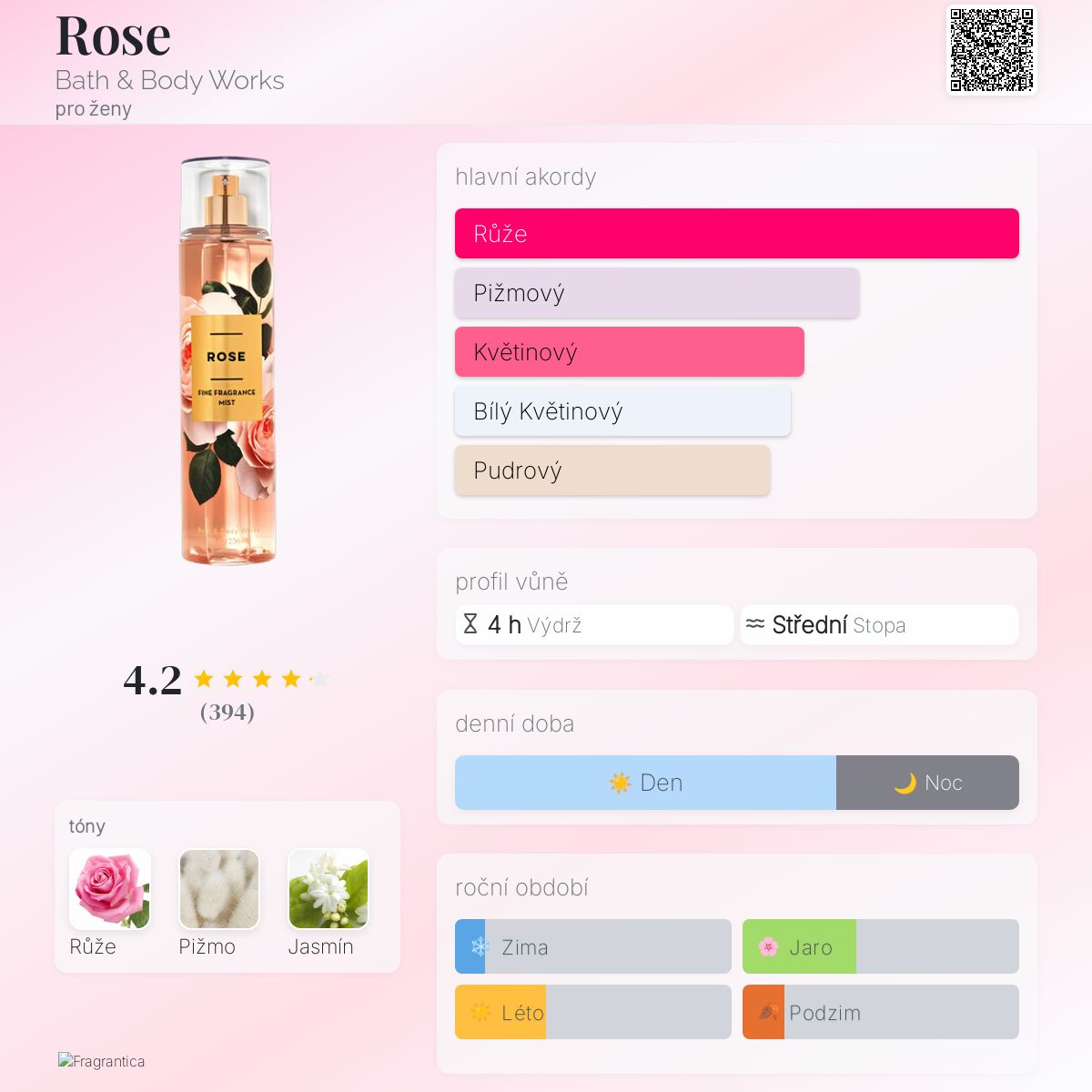 Rose podle Bath & Body Works je Floral vůně pro ženy. Rose byl/a uveden/a v roce 2019.