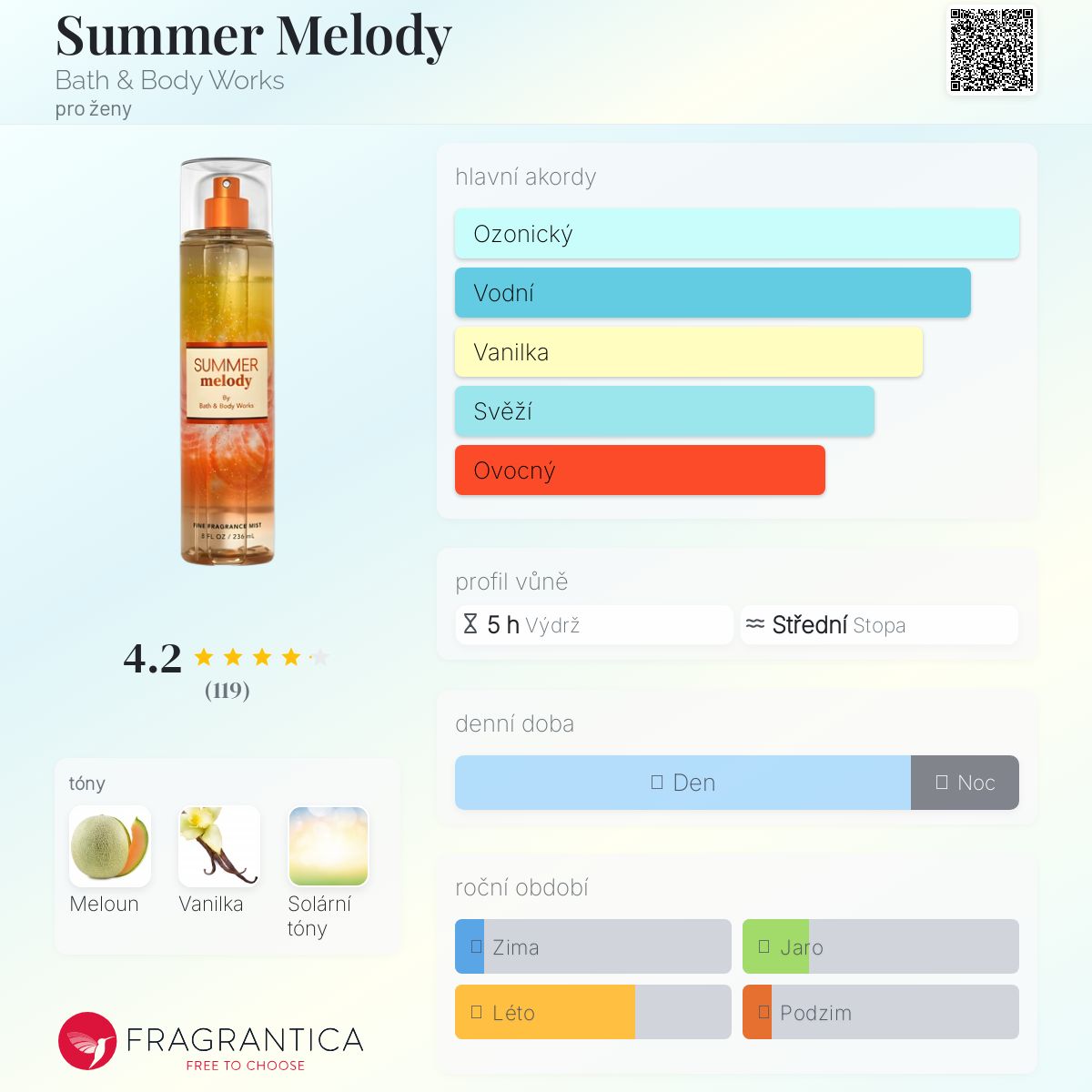 Summer Melody podle Bath & Body Works je Orientální Vanilla vůně pro ženy. Summer Melody byl/a uveden/a v roce 2022.