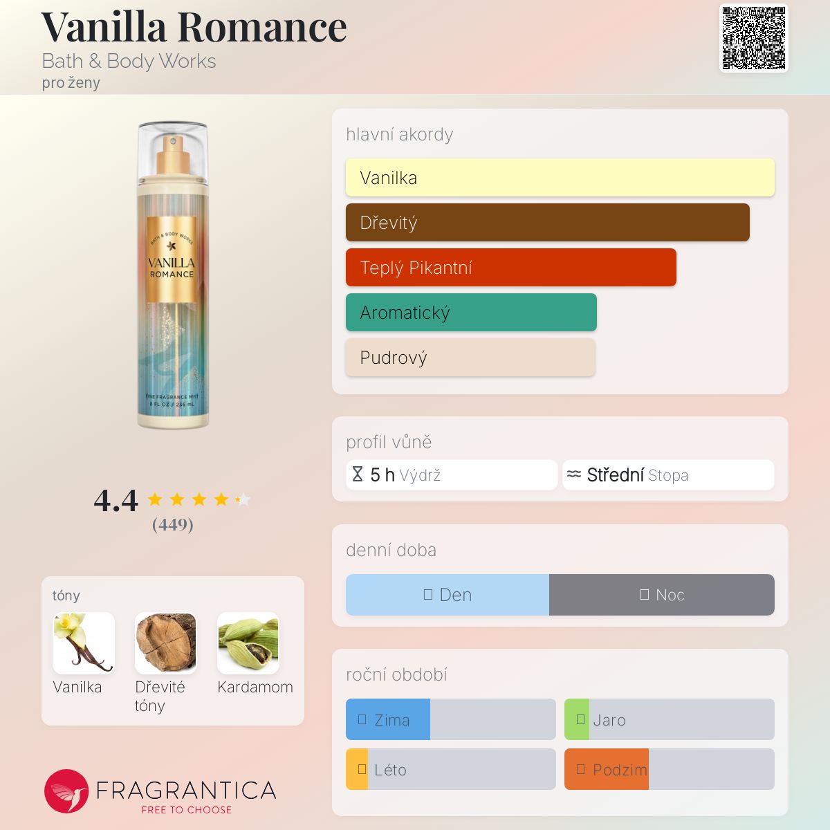 Vanilla Romance podle Bath & Body Works je Orientální Vanilla vůně pro ženy. Toto je nová vůně. Vanilla Romance byl/a uveden/a v roce 2024.