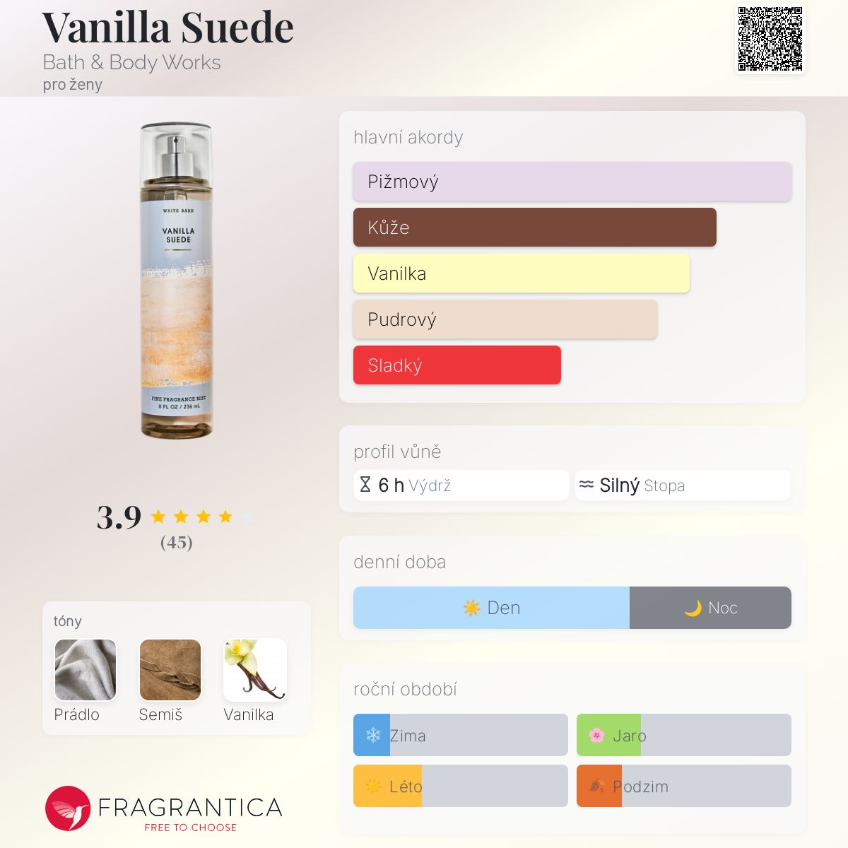 Vanilla Suede podle Bath & Body Works je Floral Woody Musk vůně pro ženy. Toto je nová vůně. Vanilla Suede byl/a uveden/a v roce 2025.