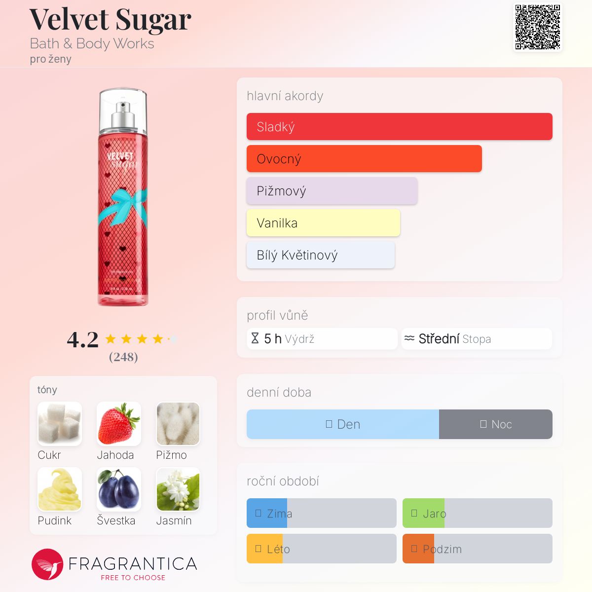 Velvet Sugar podle Bath & Body Works je Floral Fruity Gourmand vůně pro ženy. Velvet Sugar byl/a uveden/a v roce 2020.