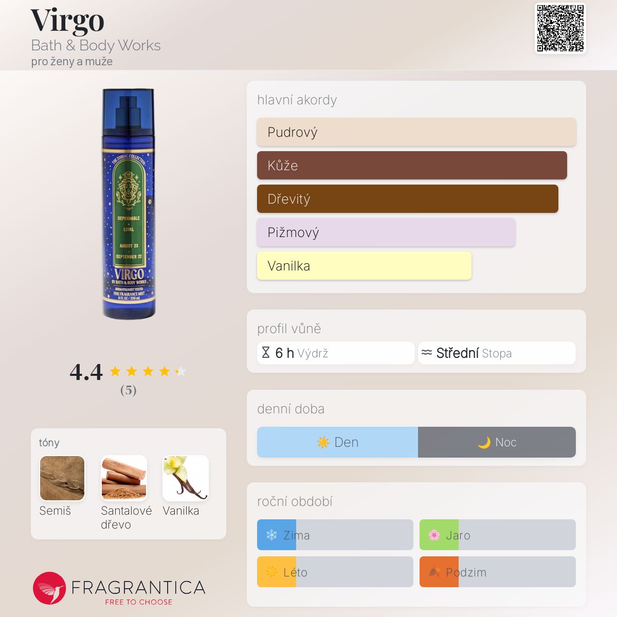 Virgo podle Bath & Body Works je vůně pro ženy a muže. Toto je nová vůně. Virgo byl/a uveden/a v roce 2025.