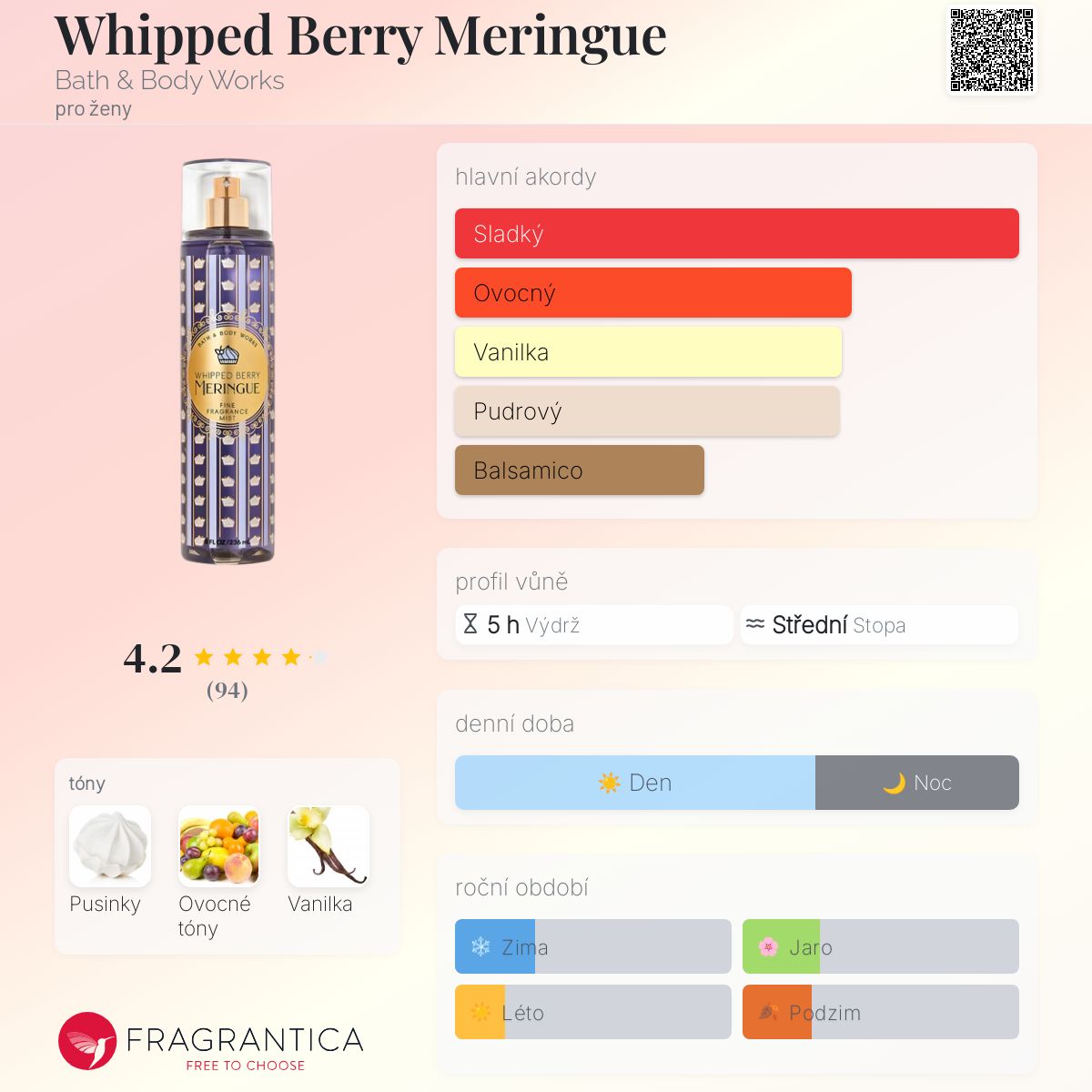 Whipped Berry Meringue podle Bath & Body Works je Orientální Vanilla vůně pro ženy. Whipped Berry Meringue byl/a uveden/a v roce 2022.