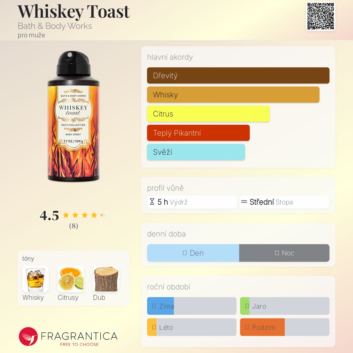Whiskey Toast podle Bath & Body Works je Woody Aromatic vůně pro muže. Toto je nová vůně. Whiskey Toast byl/a uveden/a v roce 2025.