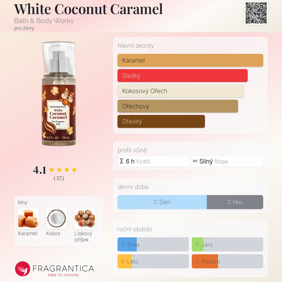 White Coconut Caramel podle Bath & Body Works je Aromatic Fruity vůně pro ženy. Toto je nová vůně. White Coconut Caramel byl/a uveden/a v roce 2022.