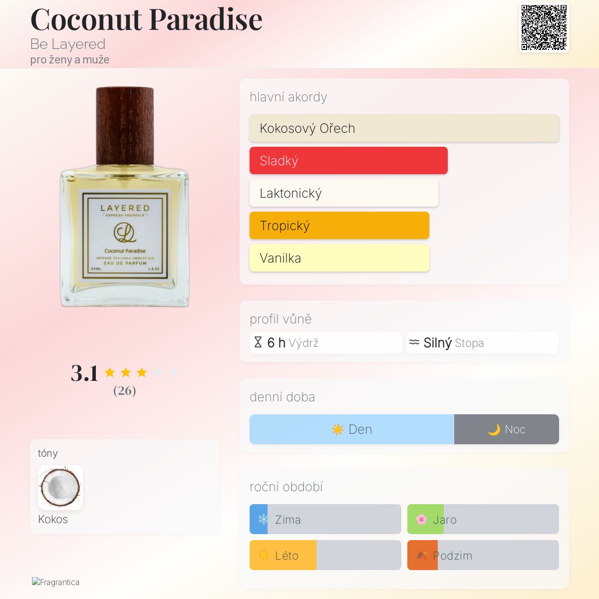 Coconut Paradise podle Be Layered je Aromatic vůně pro ženy a muže. Coconut Paradise byl/a uveden/a v roce 2019.