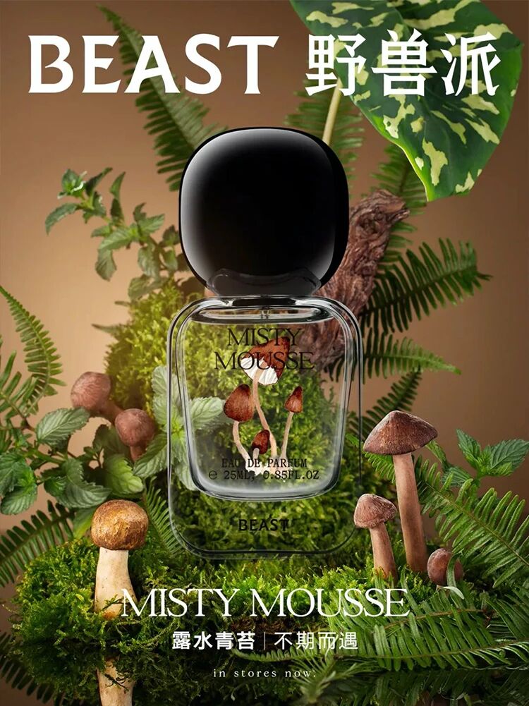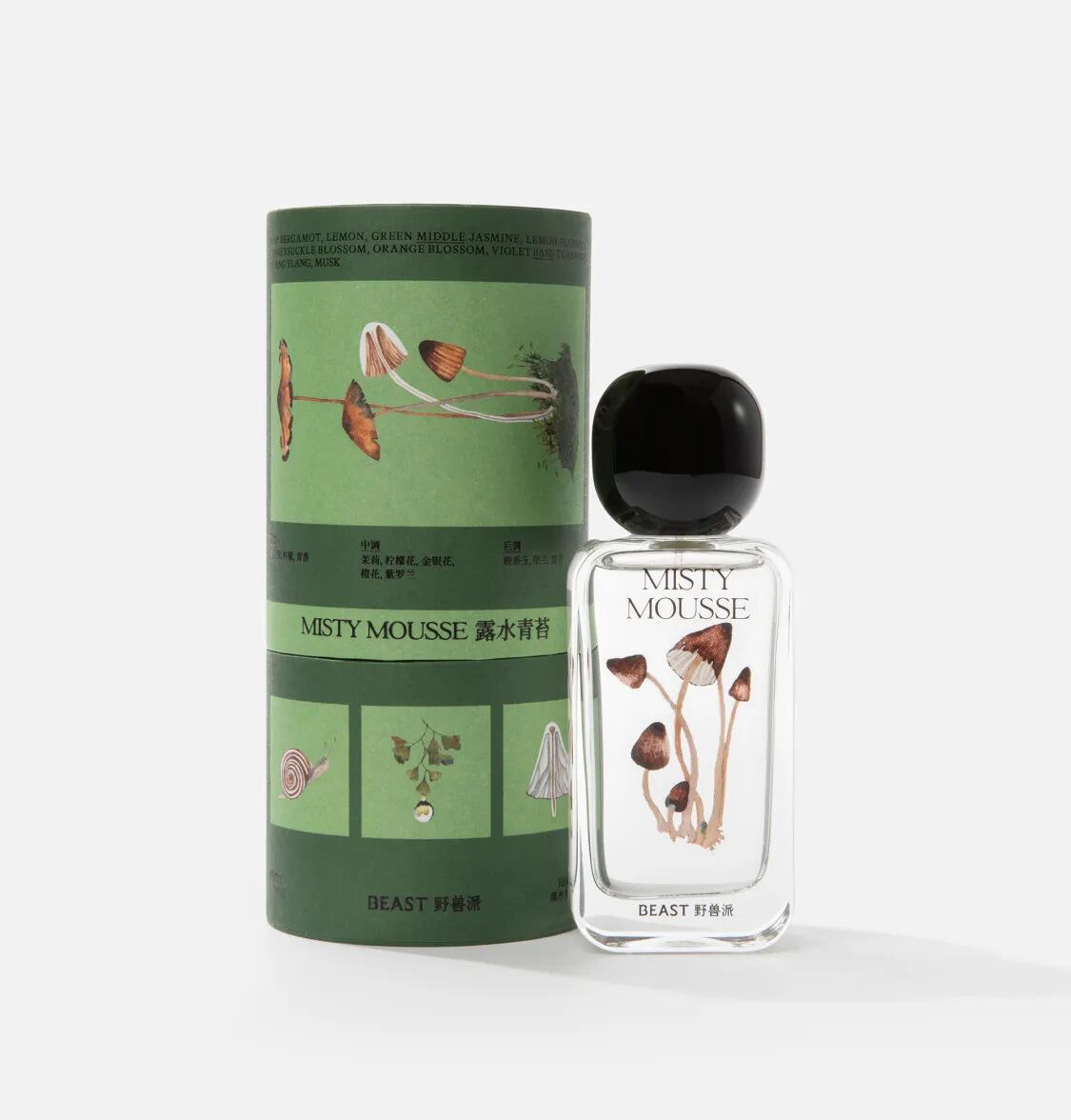 Misty Mousse 露水青苔 podle Beast 野兽派 je vůně pro ženy a muže. "Nosem" za touto vůní je Florian Gallo. Vrchní tóny jsou Zelené tóny, Bergamot a Citrón; střední tóny jsouPomerančový květ, Citronový květ, Jasmín, Fialka a Med ; základní tóny jsou Tuberóza, Pižmo a Ylang-Ylang.