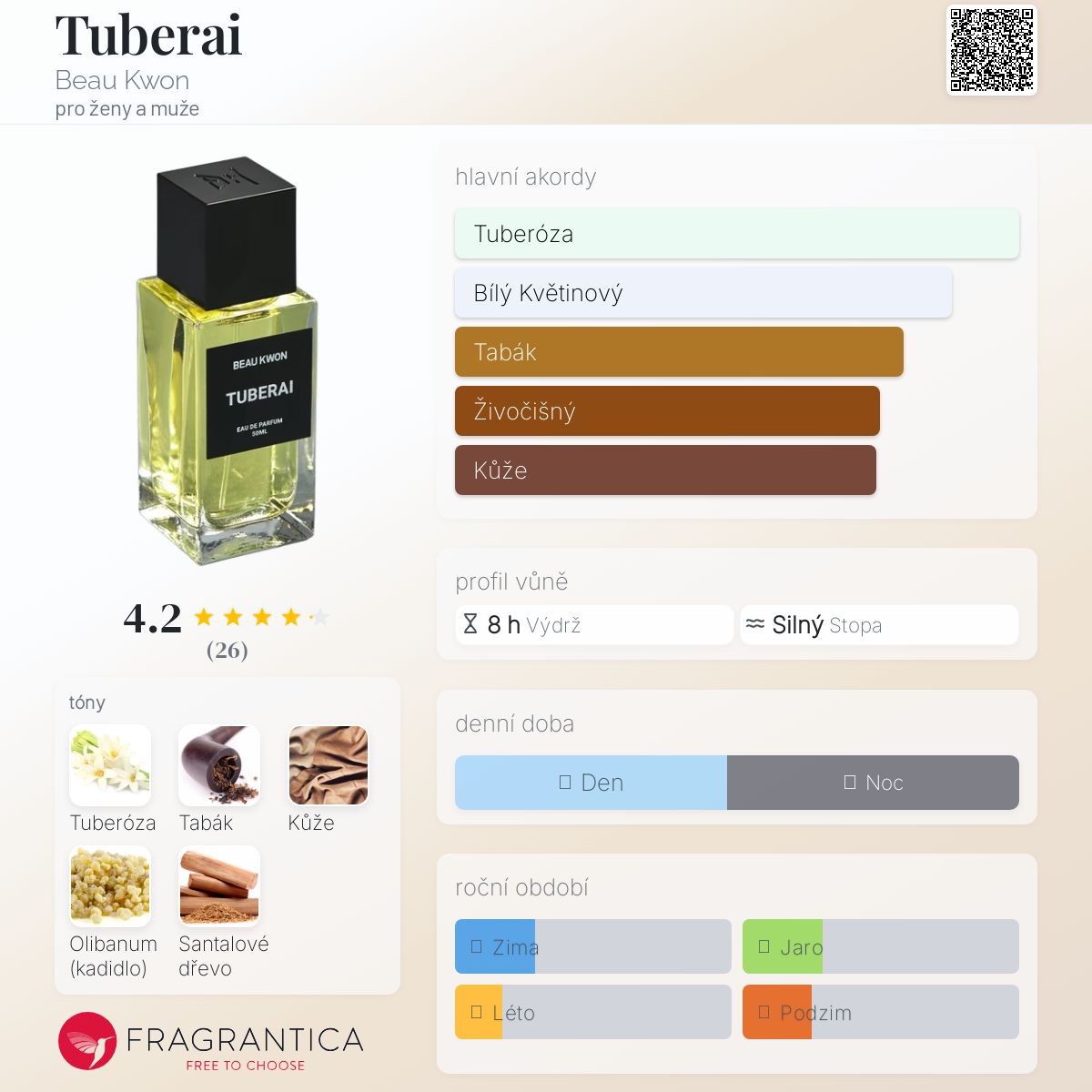 Tuberai podle Beau Kwon je vůně pro ženy a muže. Tuberai byl/a uveden/a v roce 2018. "Nosem" za touto vůní je Tomoo Inaba.