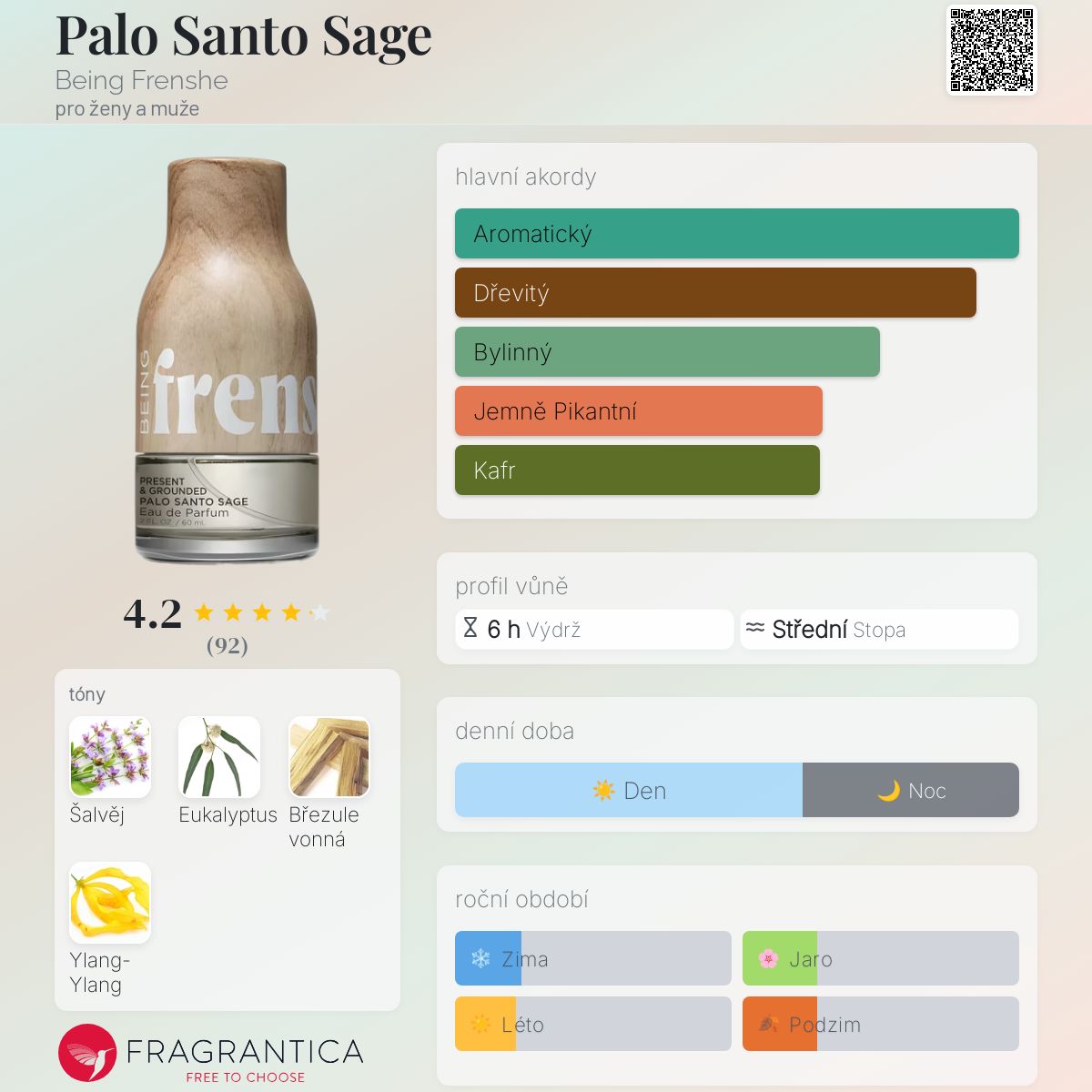 Palo Santo Sage podle Being Frenshe je Woody Aromatic vůně pro ženy a muže. Toto je nová vůně. Palo Santo Sage byl/a uveden/a v roce 2024.