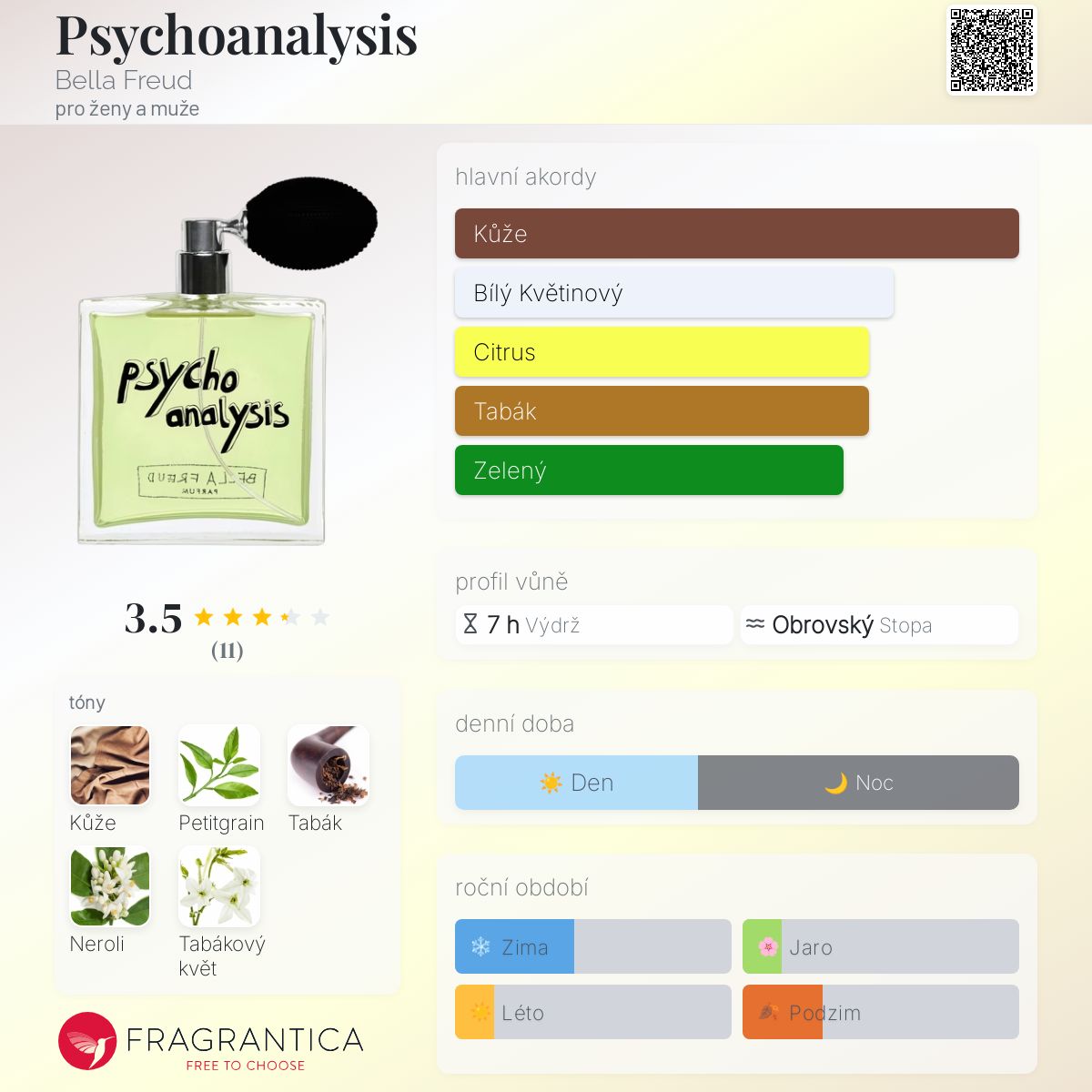 Psychoanalysis podle Bella Freud je Leather vůně pro ženy a muže. Psychoanalysis byl/a uveden/a v roce 2017. Vrchní tóny jsou Petitgrain a Neroli; střední tóny jsouTabák a Tabákový květ ; základní tón je Kůže.