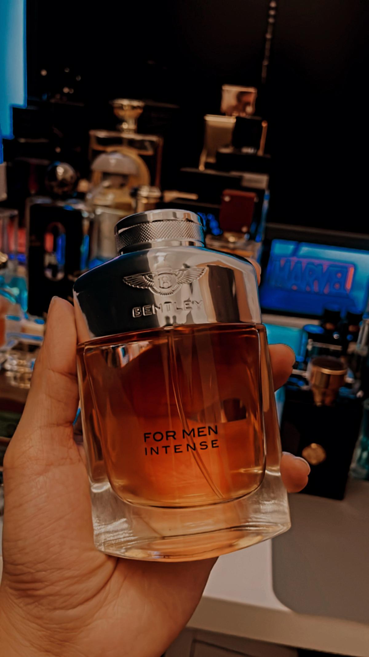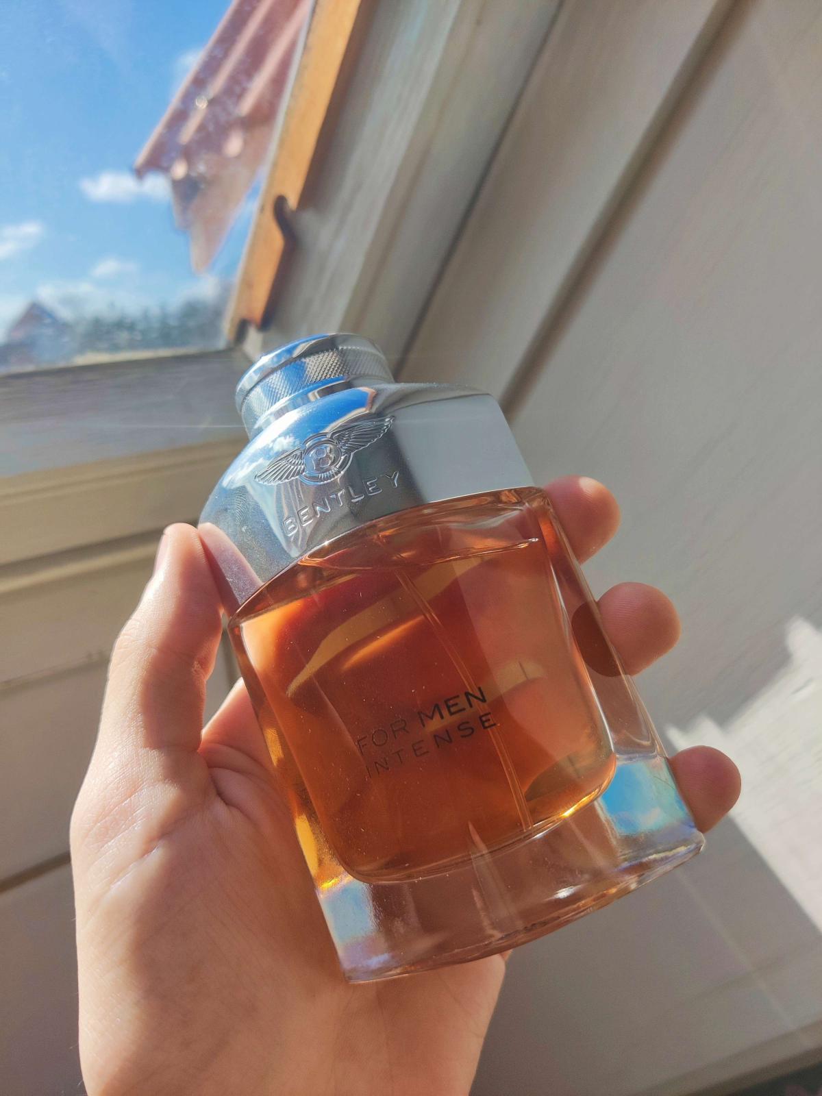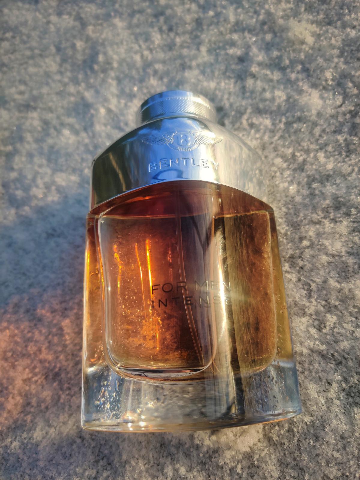 Bentley for Men Intense se otevírá intenzivním pačuli a likérovým tónem, který mi svou aromatičností a karamelem připomíná spíše bourbonskou whisky než rum jako takový. Po nanesení se po půl hodině objeví tóny dřeva a kůže zároveň, zabalené do lahodného kadidla, aniž by odváděly pozornost od benzoinu nebo likéru, i když ten trochu ztrácí na intenzitě, aniž by úplně zmizel, aby nakonec zůstal ve velkolepé vůni dřeva, kadidla a kůže mistrovsky doplněné kořením a pryskyřicí; díky tomu je sexy a šťavnatá a není suchá jako její rovněž elegantní, ale jiná sestra Bentley for men Absolute.
