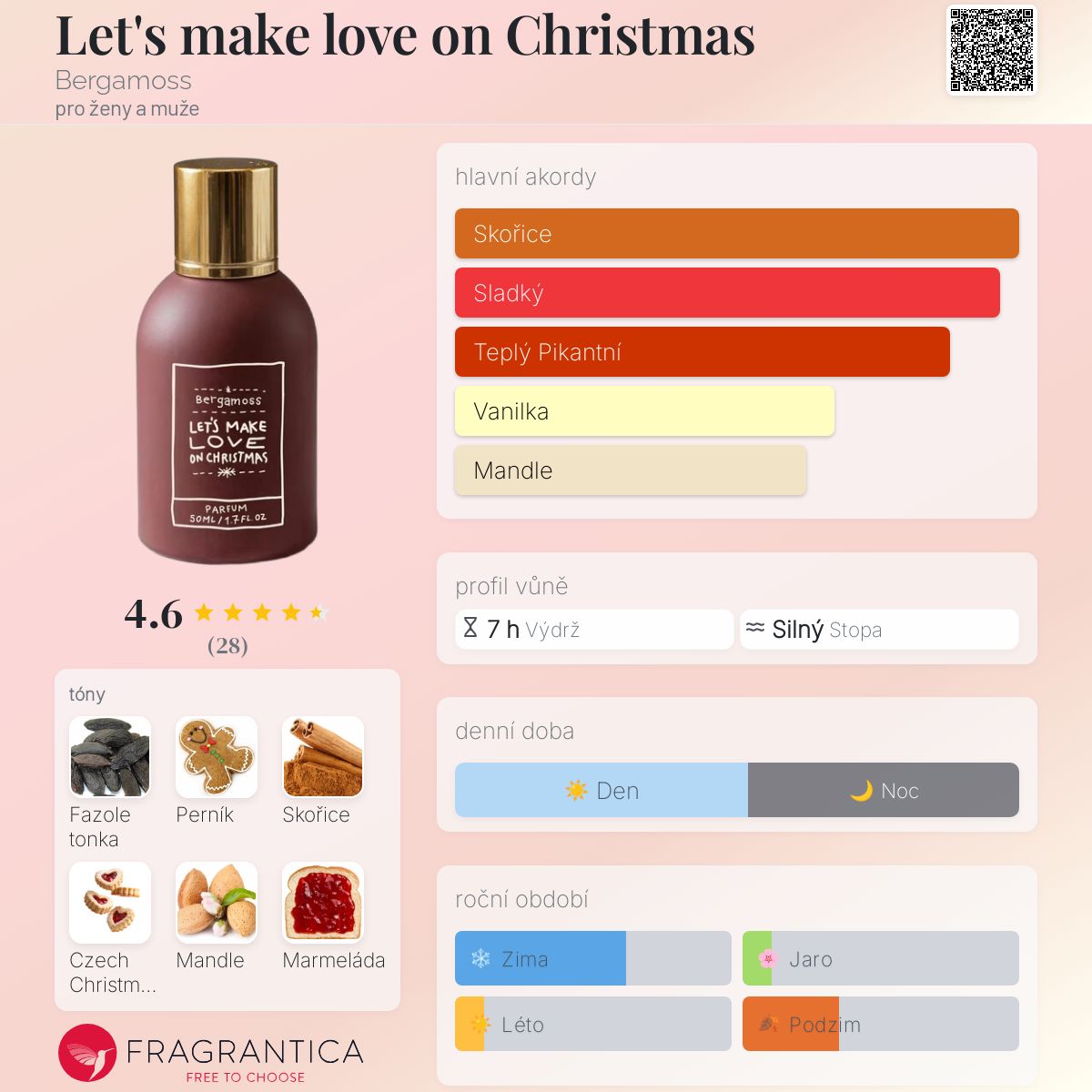 Let's make love on Christmas podle Bergamoss je vůně pro ženy a muže. Toto je nová vůně. Let's make love on Christmas byl/a uveden/a v roce 2025. "Nosem" za touto vůní je Václav Lebeda.