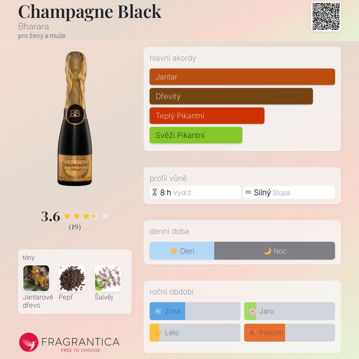 Champagne Black podle Bharara je Orientální vůně pro ženy a muže. Champagne Black byl/a uveden/a v roce 2022. Vrchní tón je Černý pepř ; střední tón jeŠalvěj ; základní tón je Jantarové dřevo.