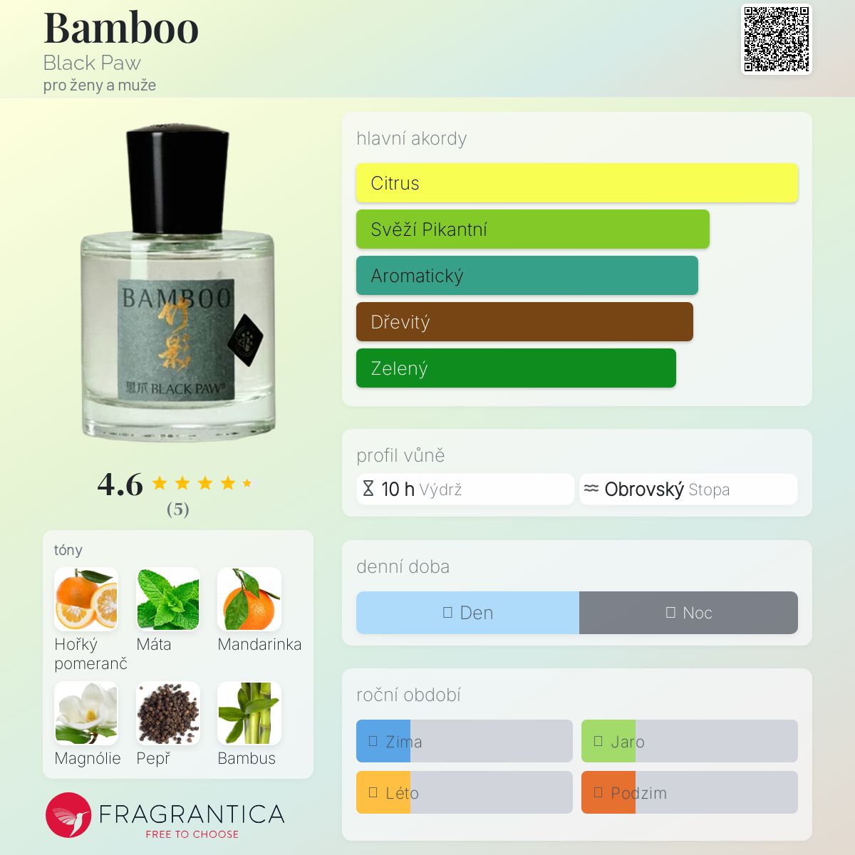 Hodnocení parfému 4.60 z 5 s 5 hlasy