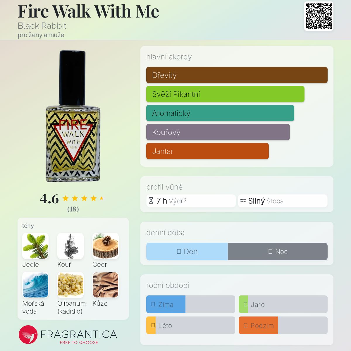 Fire Walk With Me podle Black Rabbit je Woody Spicy vůně pro ženy a muže. Fire Walk With Me byl/a uveden/a v roce 2021.