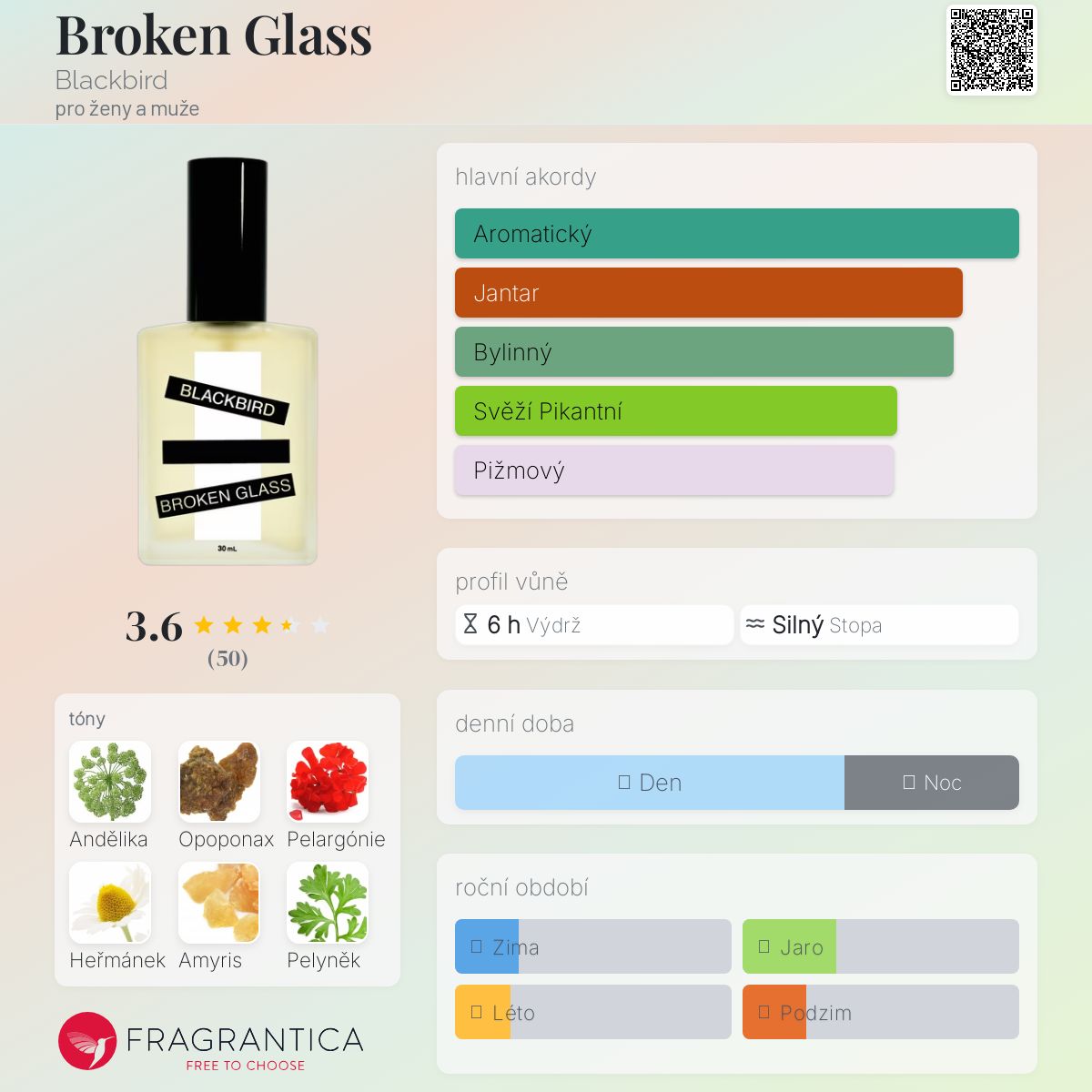 Broken Glass podle Blackbird je Floral vůně pro ženy a muže. Broken Glass byl/a uveden/a v roce 2015. "Nosem" za touto vůní je Aaron Way.