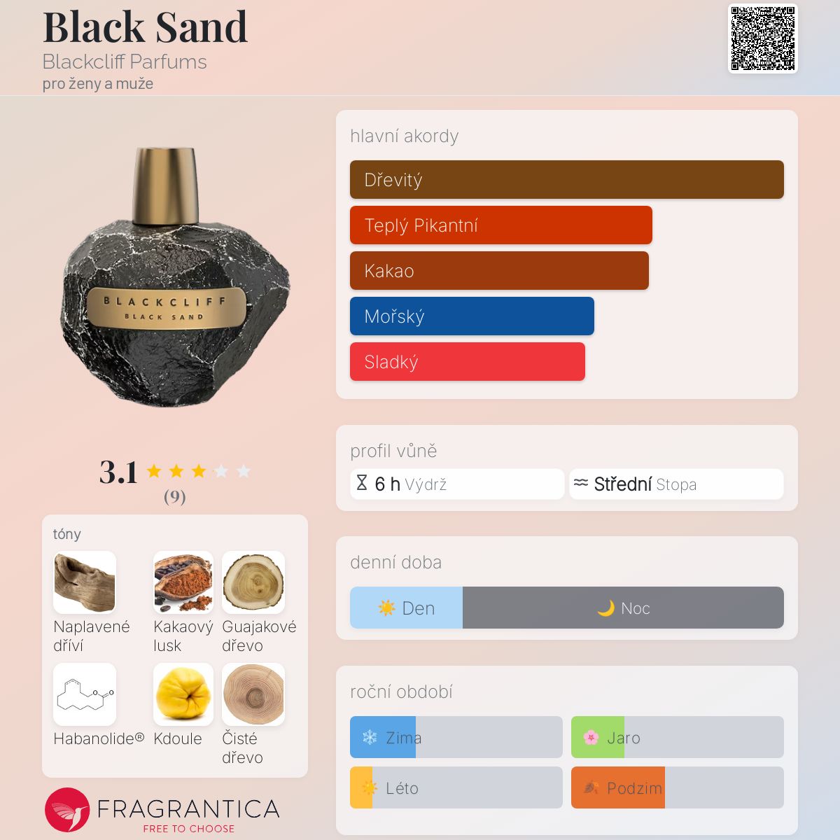 Black Sand podle Blackcliff Parfums je Woody Aromatic vůně pro ženy a muže. Black Sand byl/a uveden/a v roce 2023. "Nosem" za touto vůní je Sarah McCartney.