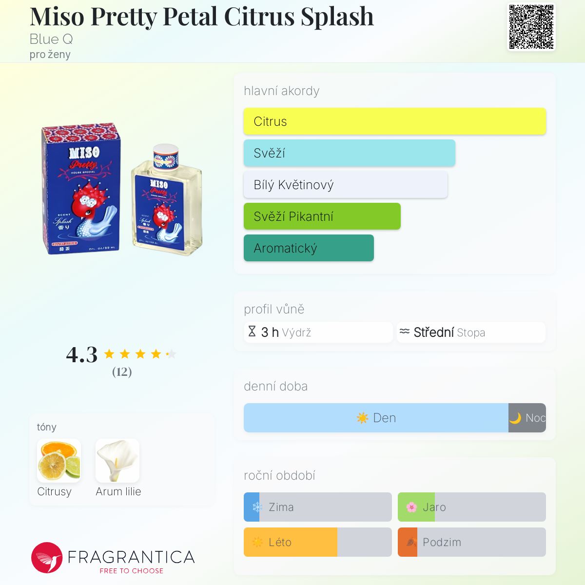Miso Pretty Petal Citrus Splash podle Blue Q je Citrus vůně pro ženy. Miso Pretty Petal Citrus Splash byla spuštěna během 2000.