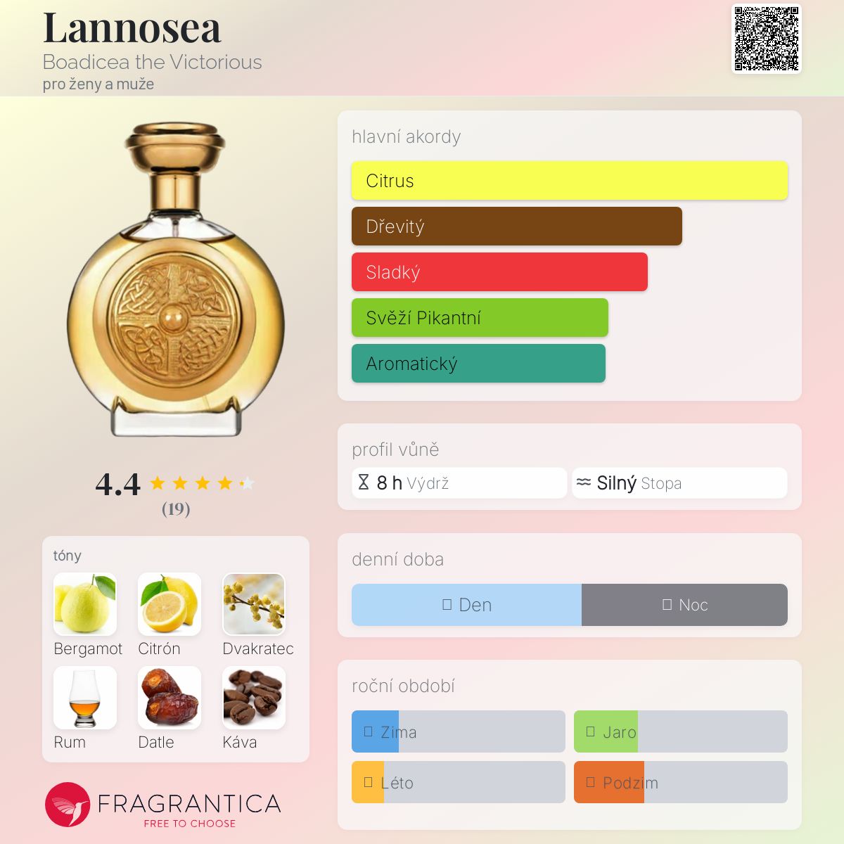 Lannosea podle Boadicea the Victorious je vůně pro ženy a muže. Toto je nová vůně. Lannosea byl/a uveden/a v roce 2025. "Nosem" za touto vůní je Céline Herbette. Vrchní tóny jsou Bergamot, Citrón, Rum, Datle a Růžový pepř; střední tóny jsouDvakratec, Pražená kávová zrna, Pomerančový květ, Jedle a Černý bez ; základní tóny jsou Oud Smoke, Cedr, Labdanum, Kůže, Guajakové dřevo a Dub.