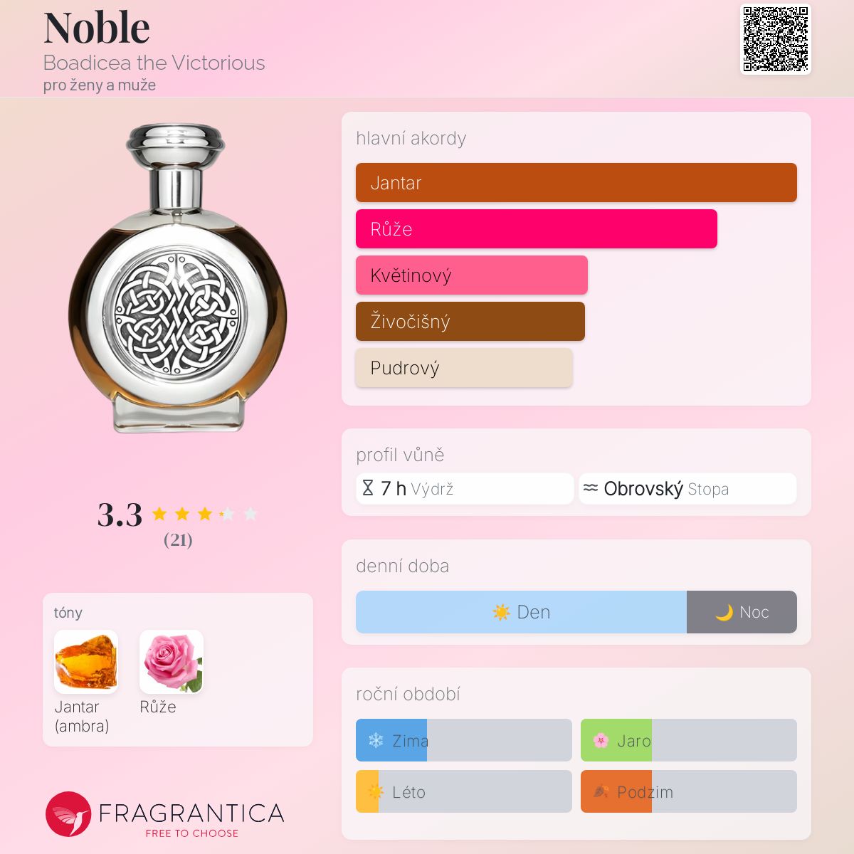 Noble podle Boadicea the Victorious je Floral vůně pro ženy a muže. Noble byl/a uveden/a v roce 2008.
