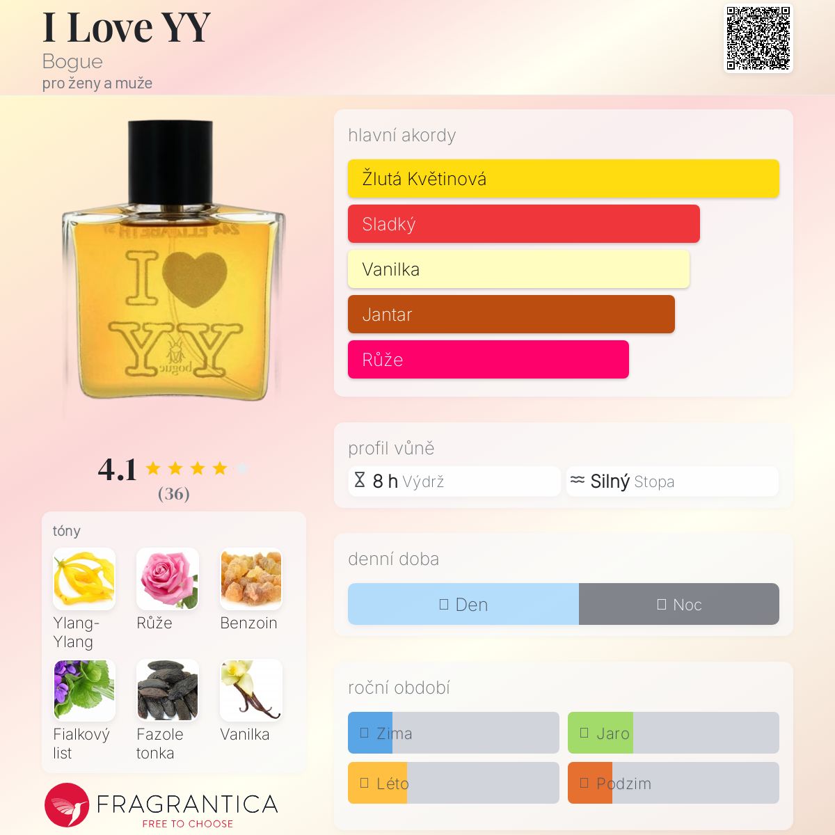 I Love YY podle Bogue je Floral vůně pro ženy a muže. I Love YY byl/a uveden/a v roce 2019. "Nosem" za touto vůní je Antonio Gardoni.