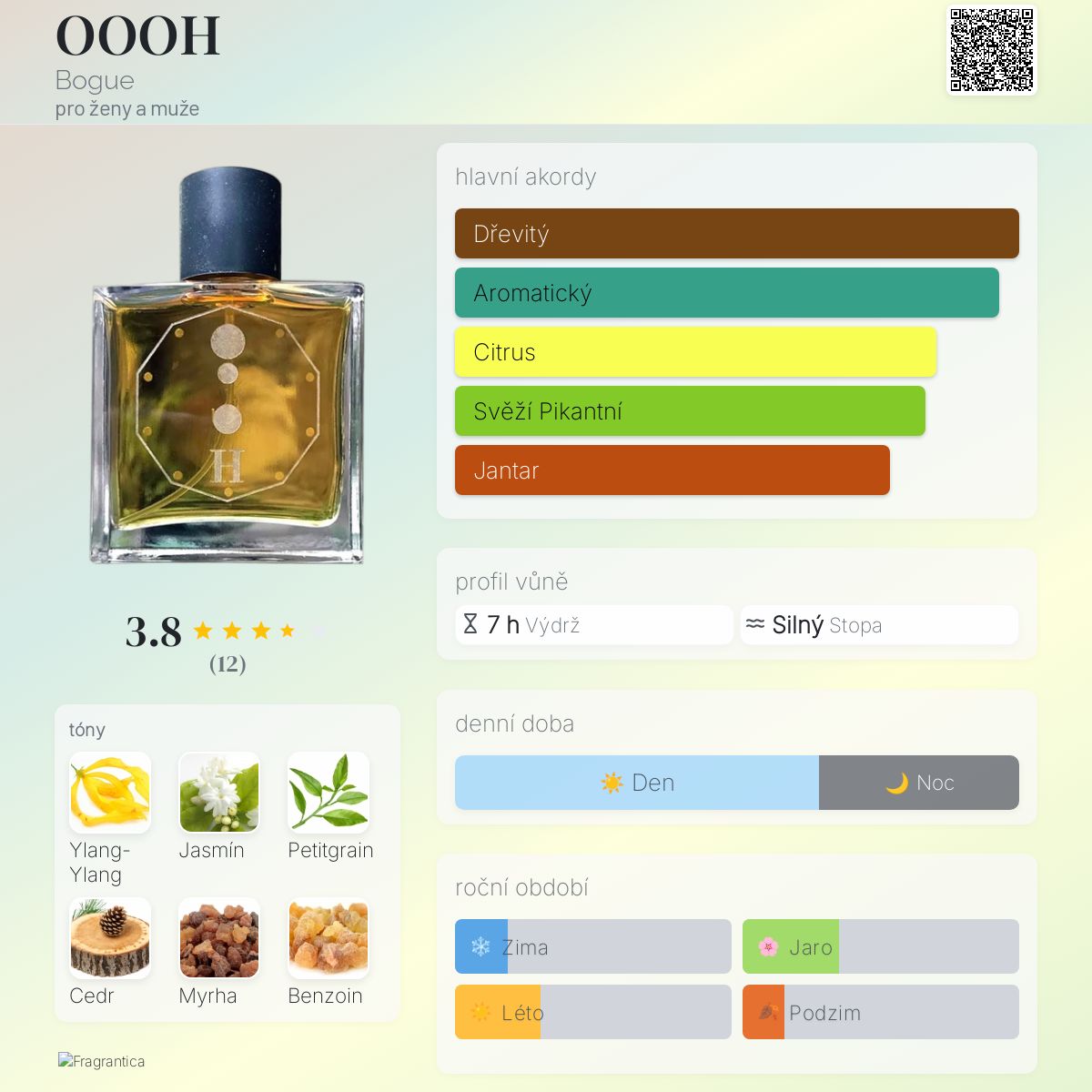 OOOH podle Bogue je vůně pro ženy a muže. OOOH byl/a uveden/a v roce 2020. "Nosem" za touto vůní je Antonio Gardoni.
