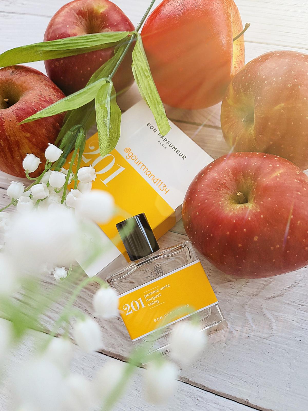 201 granny smith, lily-of-the-valley, pear podle Bon Parfumeur je Floral Fruity vůně pro ženy a muže. 201 granny smith, lily-of-the-valley, pear byl/a uveden/a v roce 2017. "Nosem" za touto vůní je Philippe Romano. Vrchní tóny jsou Zelené jablko, Hruška, Bergamot a Černý rybíz; střední tóny jsouKonvalinka, Frézie, Magnólie a Aksamitník ; základní tóny jsou Pižmo, Vetiver a Cedr.