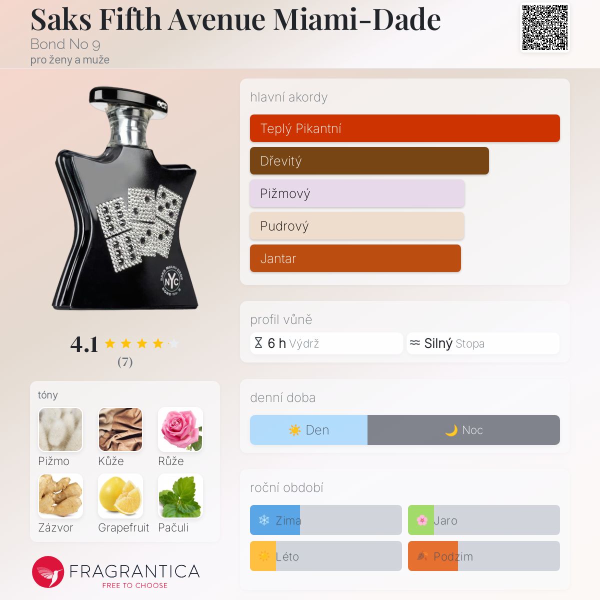 Saks Fifth Avenue Miami-Dade podle Bond No 9 je Woody Floral Musk vůně pro ženy a muže. Saks Fifth Avenue Miami-Dade byl/a uveden/a v roce 2014.