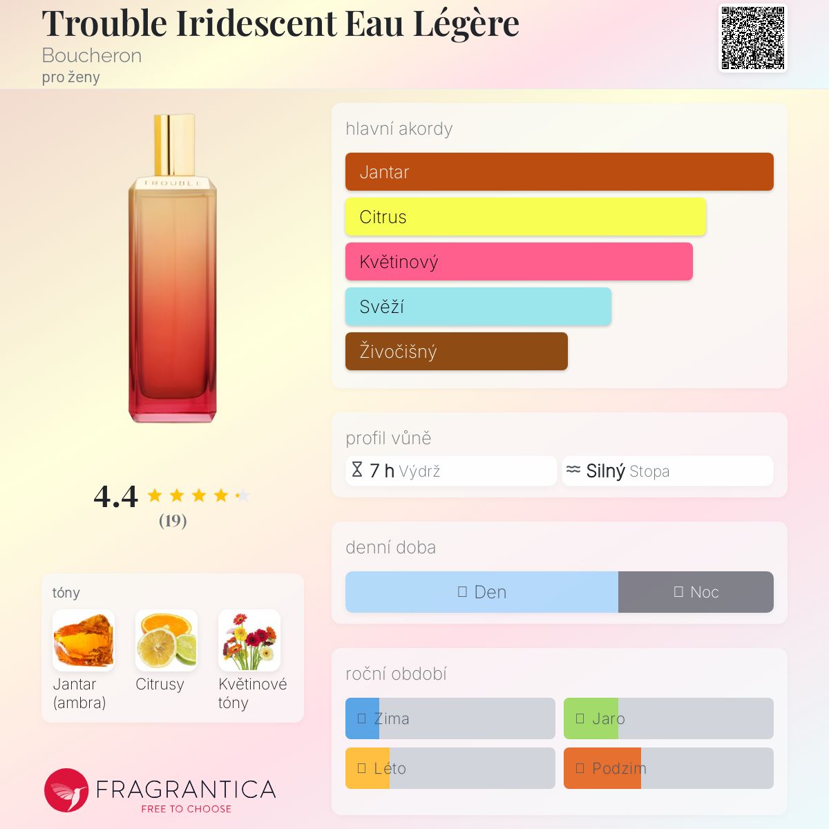 Trouble Iridescent Eau Légère podle Boucheron je Floral vůně pro ženy. Trouble Iridescent Eau Légère byl/a uveden/a v roce 2005.