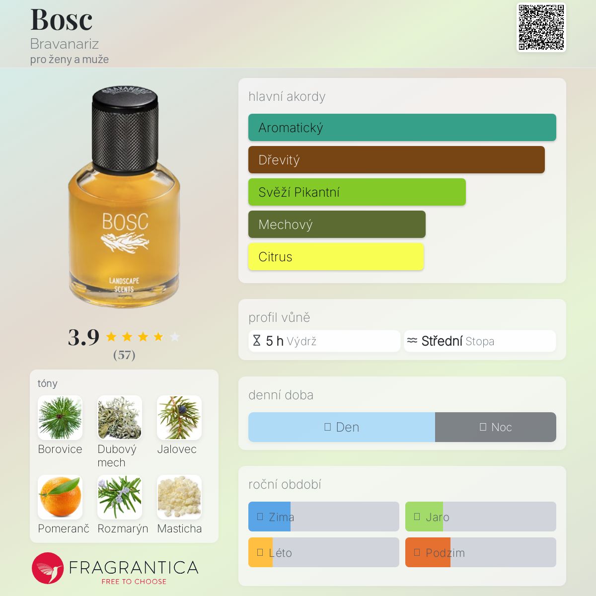 Bosc podle Bravanariz je Chypre vůně pro ženy a muže. Bosc byl/a uveden/a v roce 2018. "Nosem" za touto vůní je Ernesto Collado Sala.