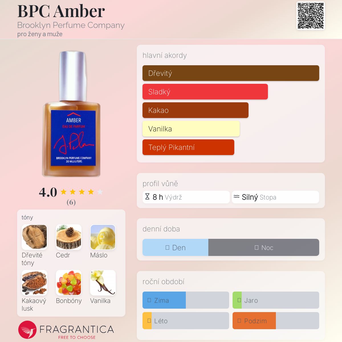 BPC Amber podle Brooklyn Perfume Company je Orientální vůně pro ženy a muže. BPC Amber byl/a uveden/a v roce 2015. "Nosem" za touto vůní je James Peterson.
