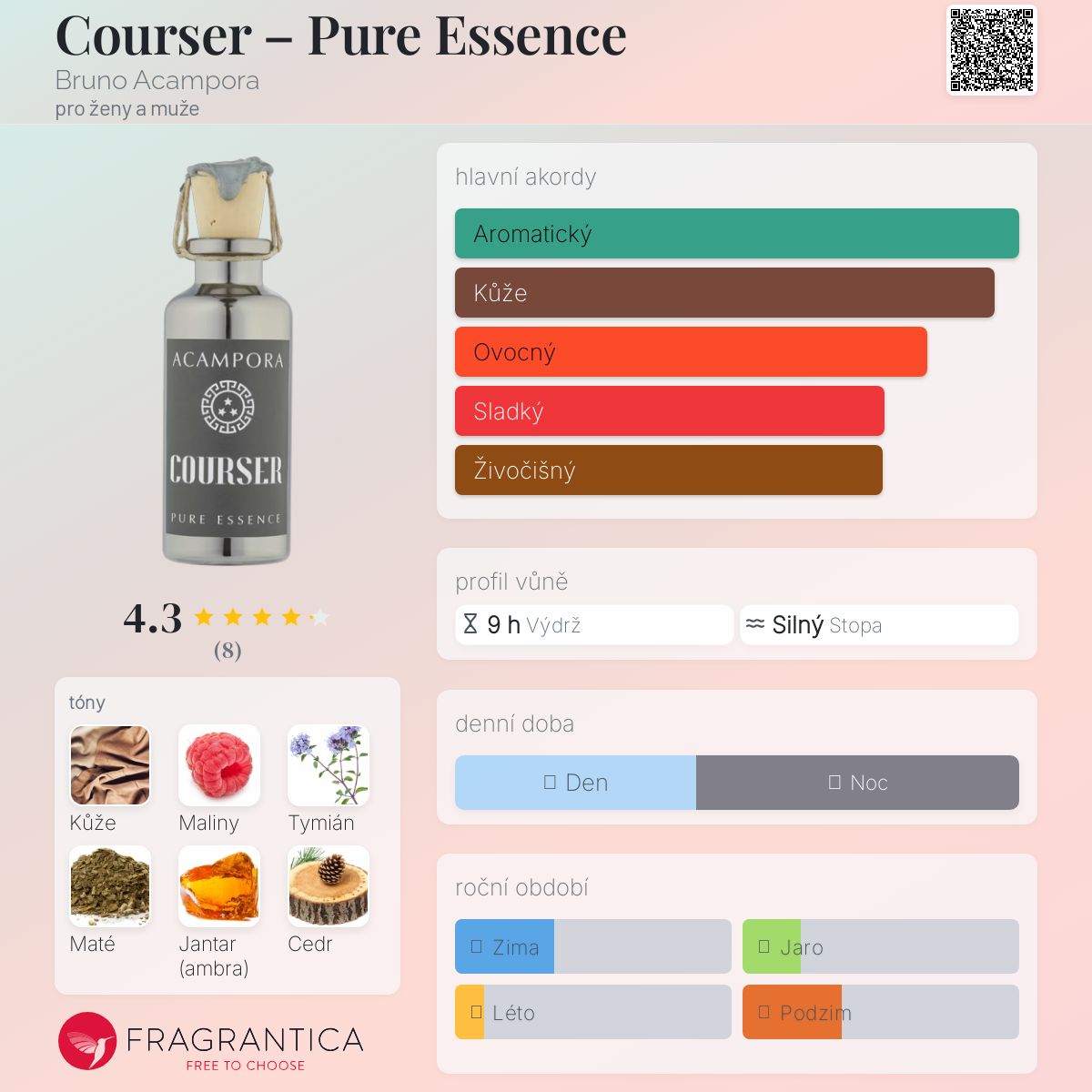 Courser – Pure Essence podle Bruno Acampora je Leather vůně pro ženy a muže. Courser – Pure Essence byl/a uveden/a v roce 2016.