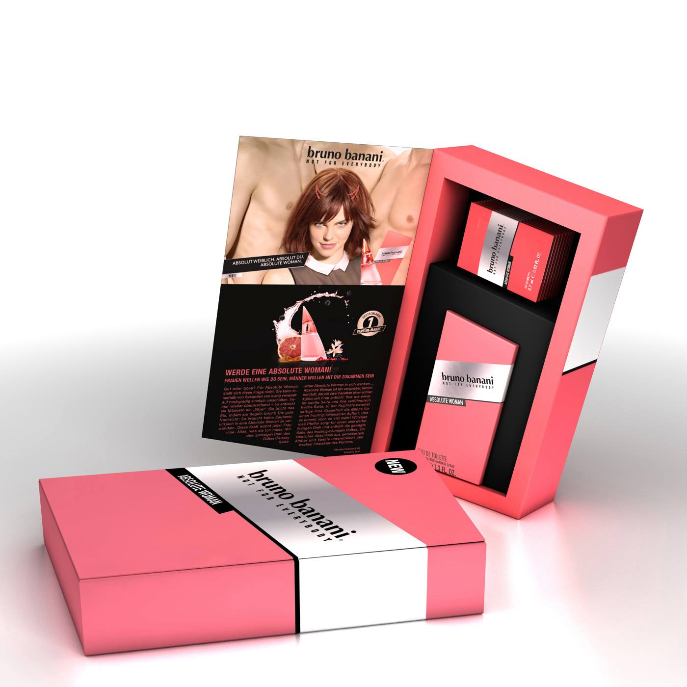 Absolute Woman podle Bruno Banani je Floral Fruity vůně pro ženy. Absolute Woman byl/a uveden/a v roce 2015. Vrchní tóny jsou Liči, Růžový pepř, Růžový grapefruit, Ostružina a Bergamot; střední tóny jsouRůže, Měsíček, Jasmín a Pomerančový květ ; základní tóny jsou Jantar (ambra), Cedr, Mech, Vanilka, Pačuli a Pižmo.
