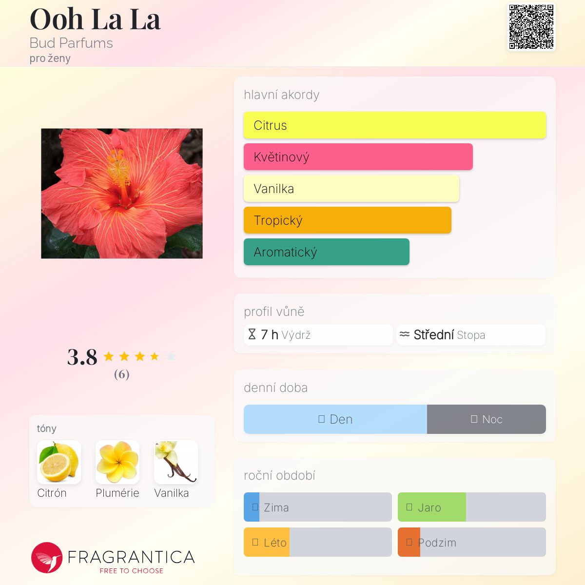 Ooh La La podle Bud Parfums je Floral Fruity vůně pro ženy. Ooh La La byla spuštěna během 2000. "Nosem" za touto vůní je Howard Jarvis.