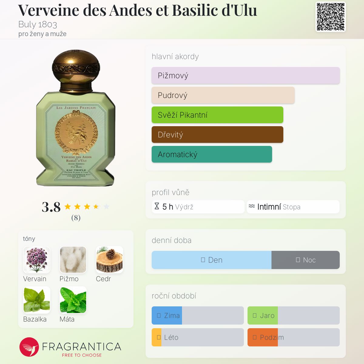 Verveine des Andes et Basilic d'Ulu podle Buly 1803 je Aromatic Green vůně pro ženy a muže. Verveine des Andes et Basilic d'Ulu byl/a uveden/a v roce 2023.