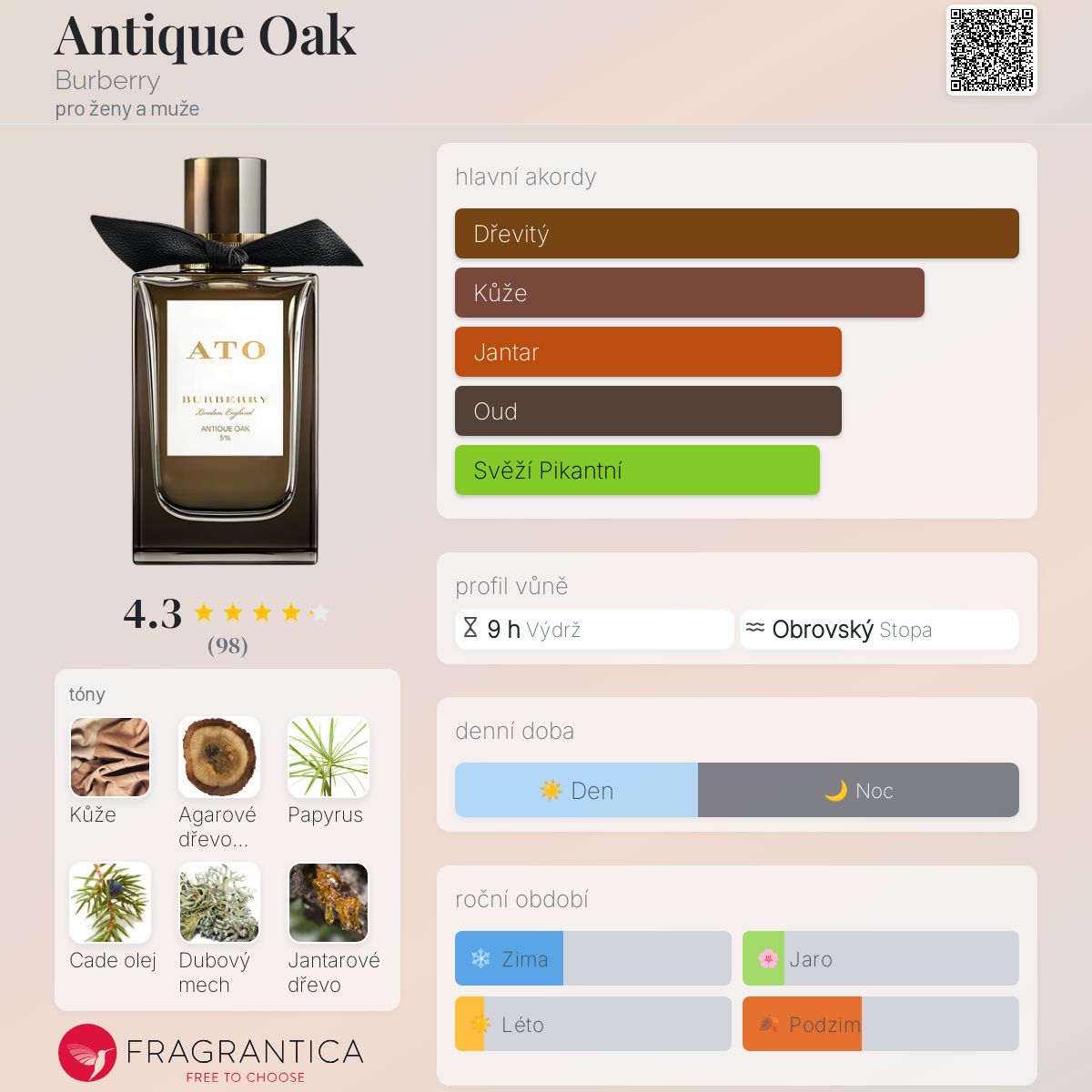 Antique Oak podle Burberry je Orientální Woody vůně pro ženy a muže. Antique Oak byl/a uveden/a v roce 2017. "Nosem" za touto vůní je Francis Kurkdjian.