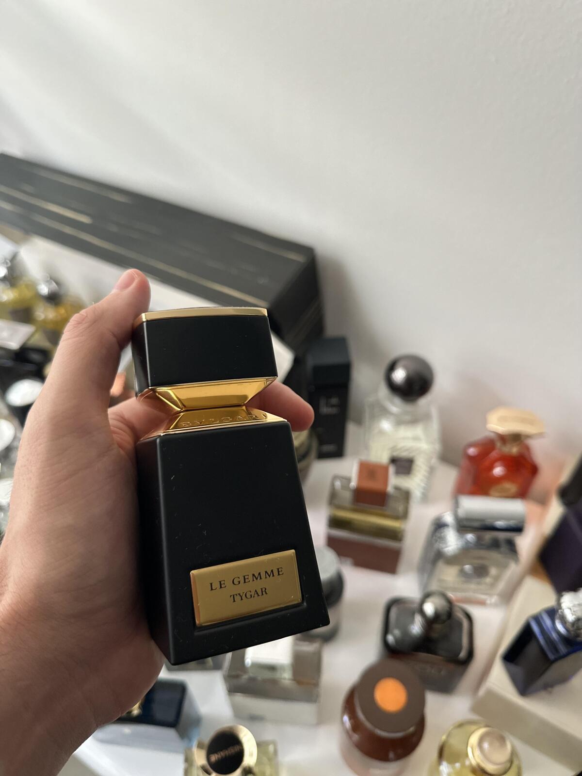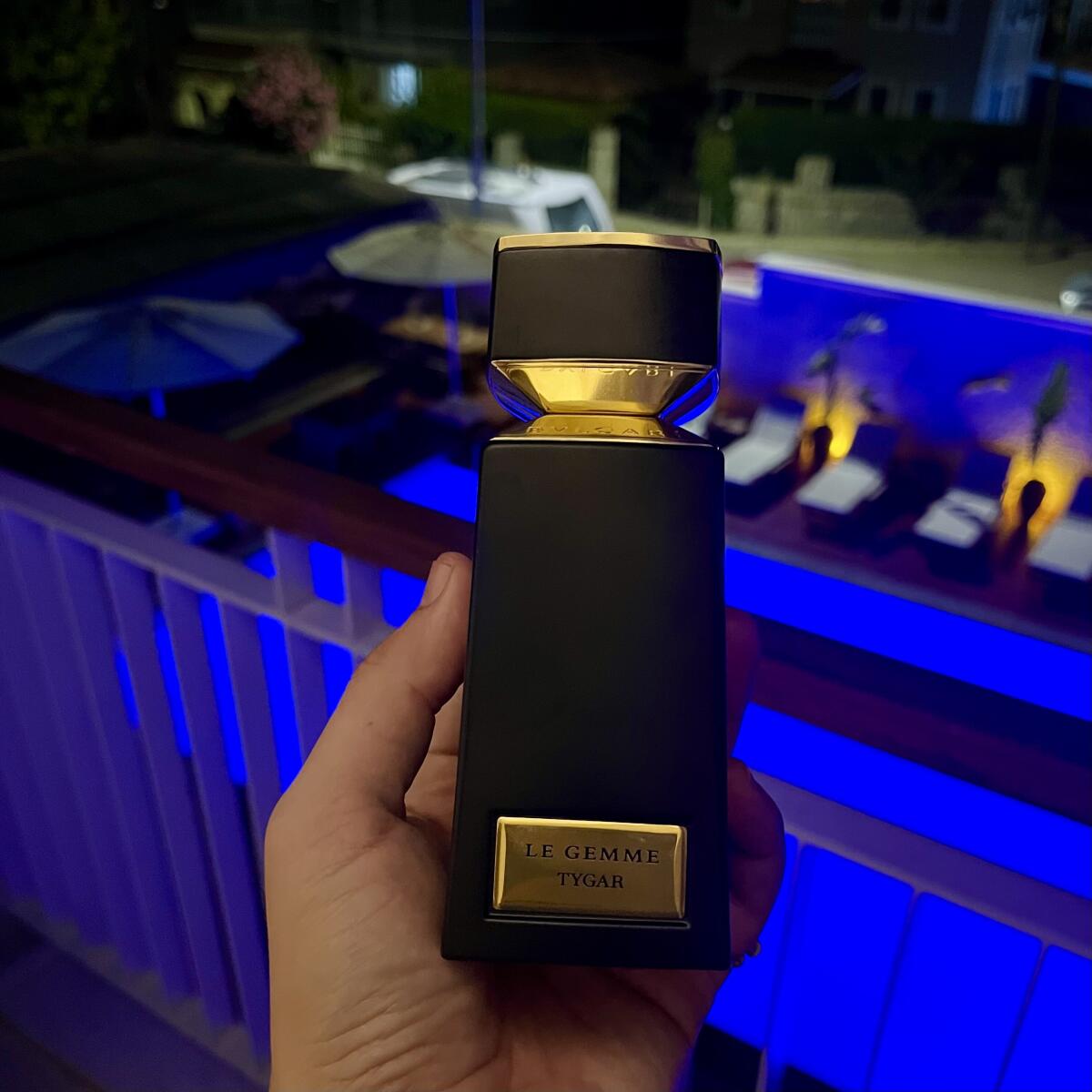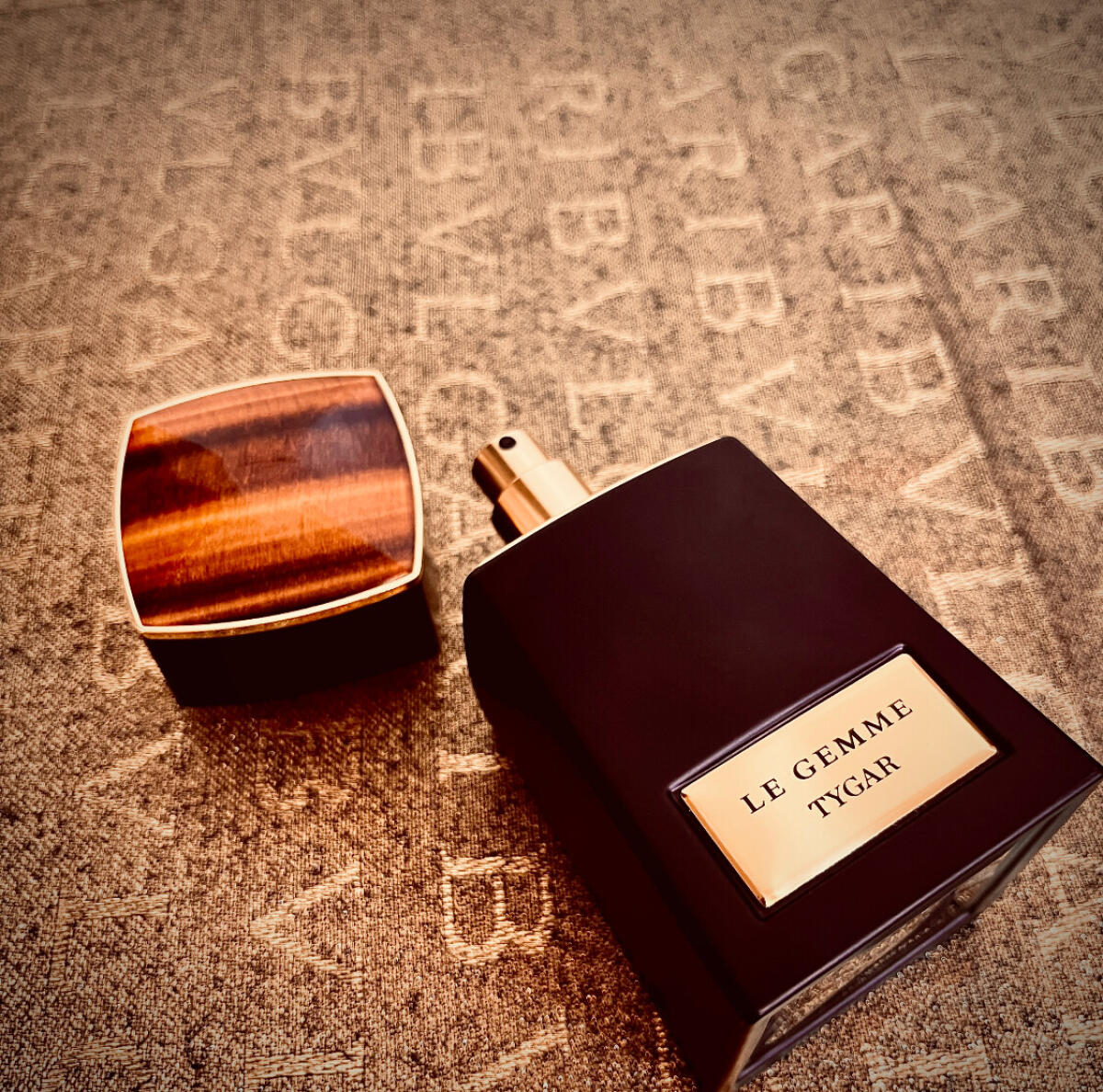 V kolekci "Le Gemme" přináší Tygar jantarovou a dřevitou citrusovou vůni. Odlišně od běžného a obvyklého pocitu charakteristických dřevitých citrusových plodů si zde můžete všimnout grapefruitu, který je téměř pryč, stále přenáší svěžest (ne intenzivní) a zářivost, měkký a jemný, již se mísí do krémového vánku, který rychle dosáhne těla/základu. Směs dřevin, které dům neprozradil, ale tipuji santalové dřevo + cedr při zachování jejich hlavních vlastností. Intenzivní, mandlové, pižmové akordy, poněkud orientální, hřejivé a jemně sladké. Od těla k základu lineárnost, nic triviálního. Výsledek je smyslný a smyslný.