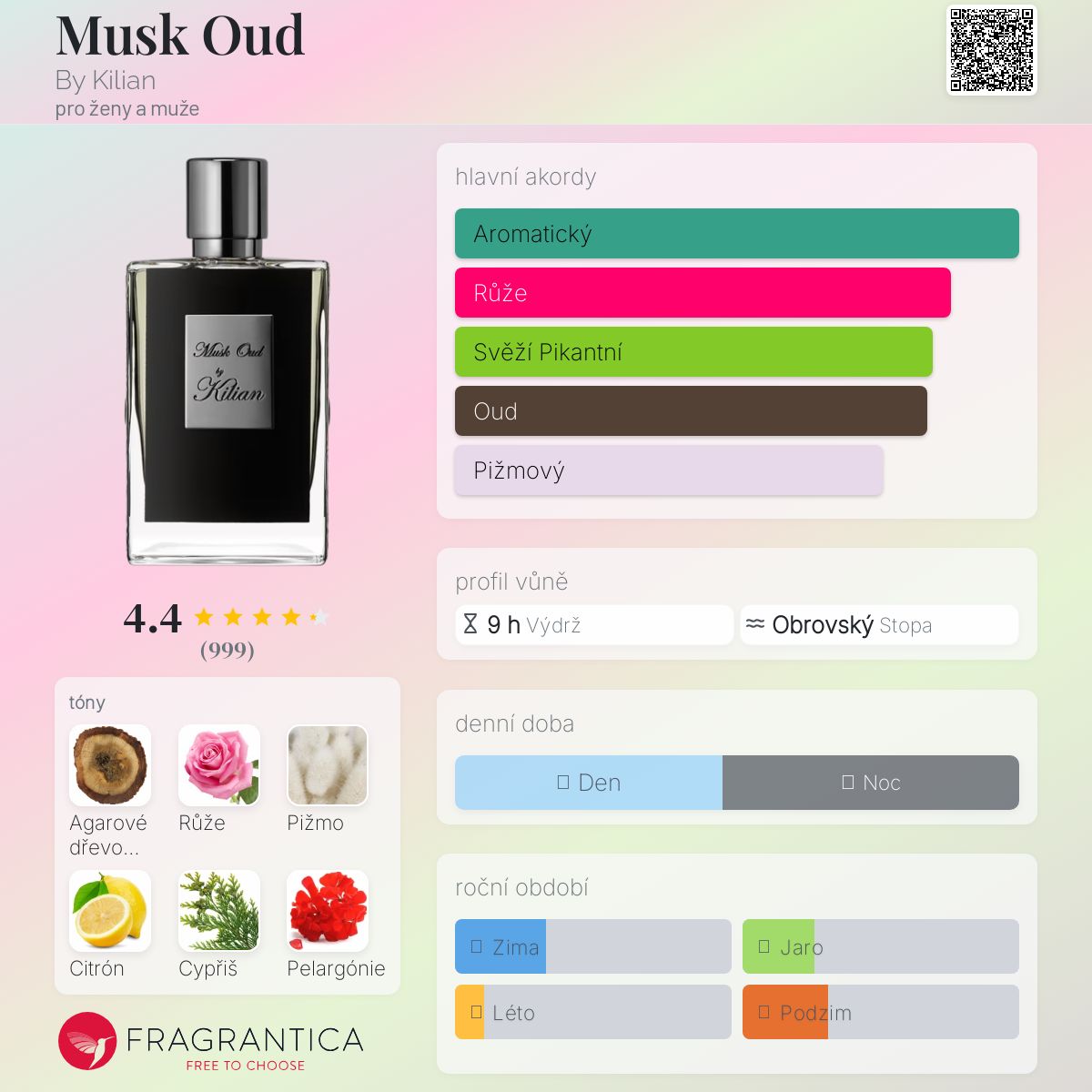 Musk Oud podle By Kilian je Woody Floral Musk vůně pro ženy a muže. Musk Oud byl/a uveden/a v roce 2013. "Nosem" za touto vůní je Alberto Morillas. Vrchní tóny jsou Citrón, Kardamom a Koriandr; střední tóny jsouBulharská růže, Cypřiš, Pelargónie a Pelyněk ; základní tóny jsou Agarové dřevo (oud), Pižmo, Rum, Kadidlo a Pačuli.